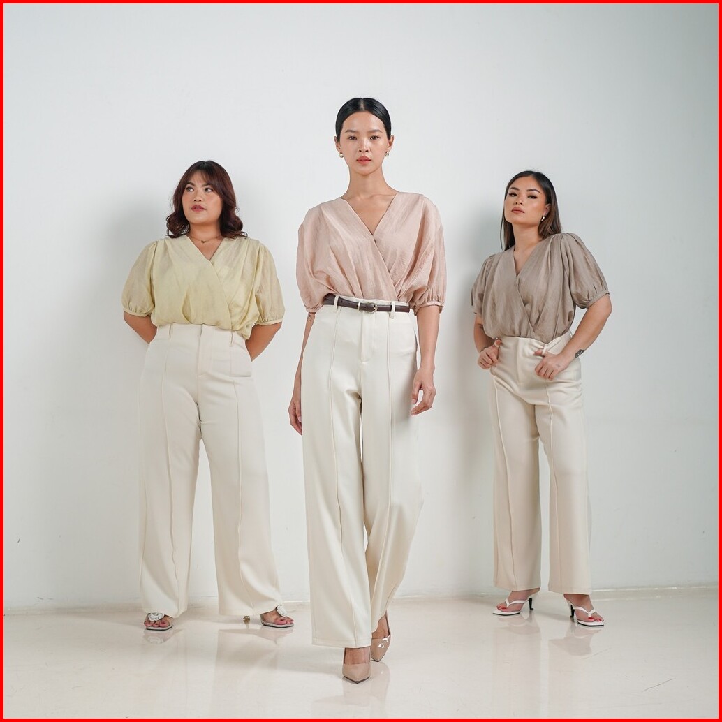 Tutuloph Lumi Blouse Atasan Blouse Lengan Pendek Wanita V - Neck Top