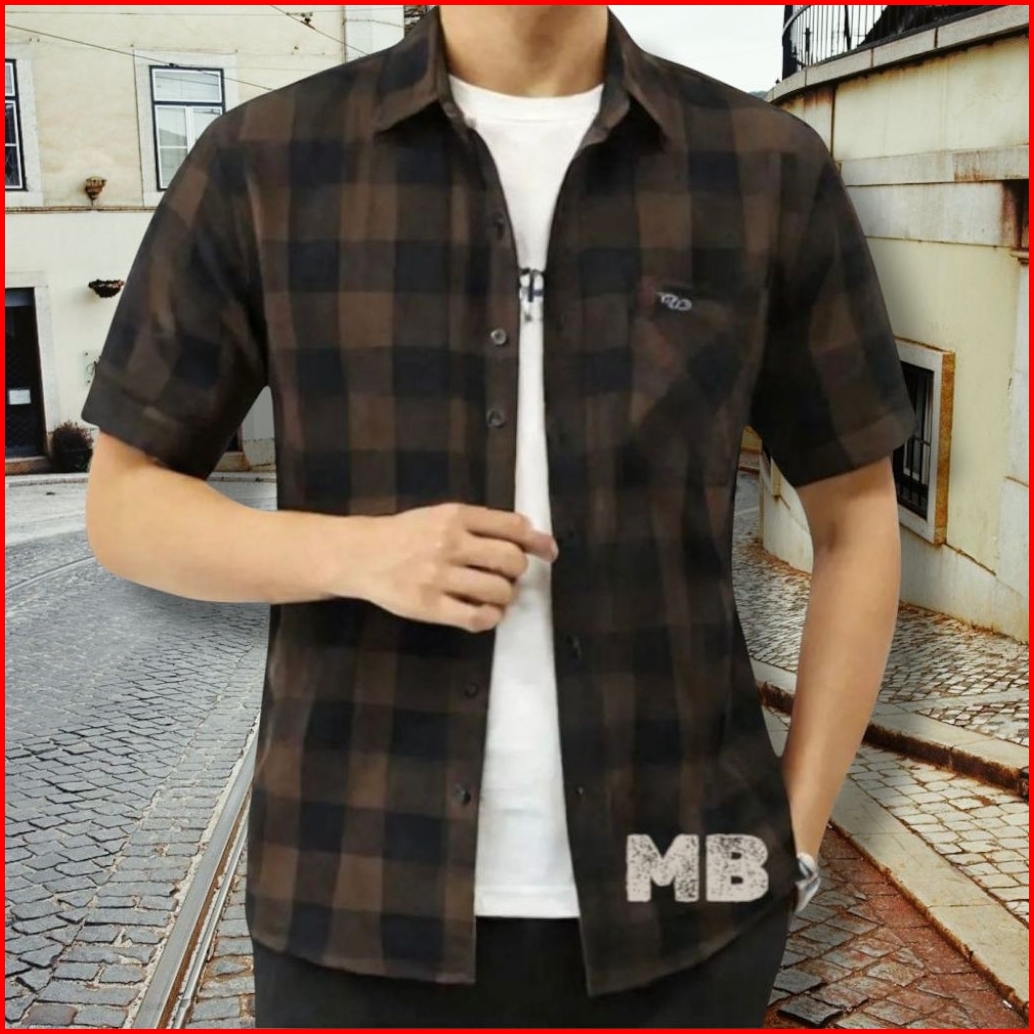 Kemeja Flanel Pria Lengan Pendek Impor Standar Dewasa Kualitas Best Seller