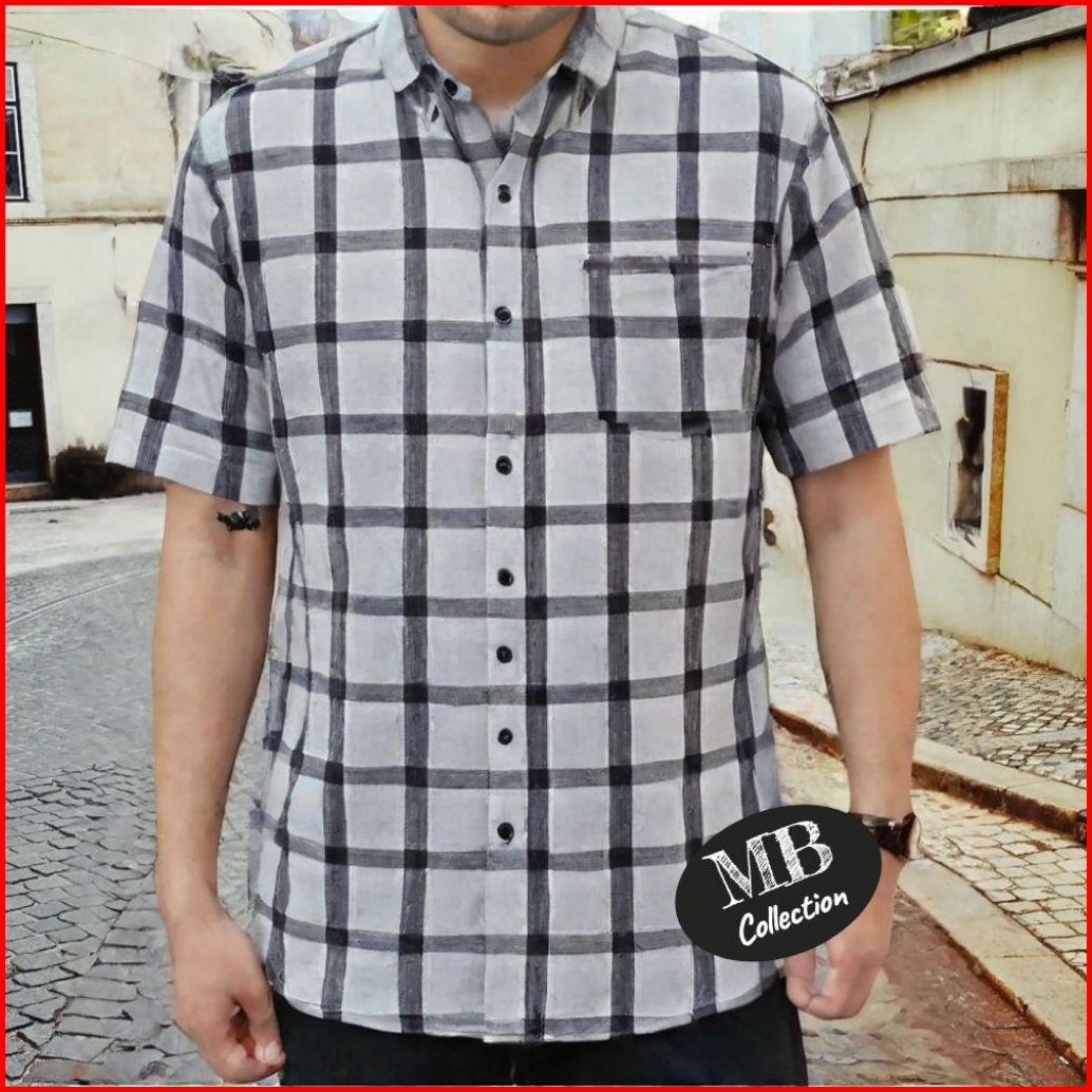 Kemeja Flanel Pria Kotak Lengan Pendek Kemeja Seragam Pria Formal Kasual Standar Dewasa