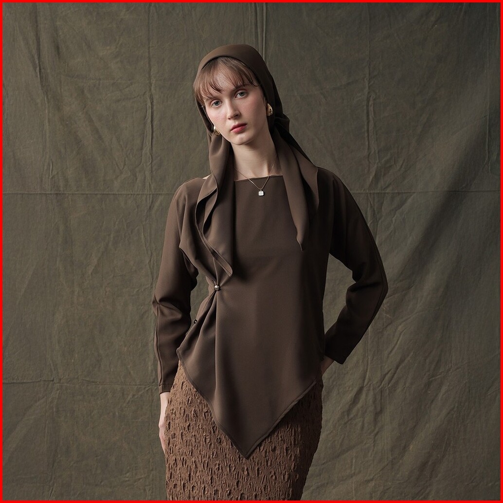 Tutuloph Donna Blouse Long Sleeve Atasan Kemeja Wanita Casual Fashion Kantor Blouse Kancing Lengan Panjang Hijab Friendl