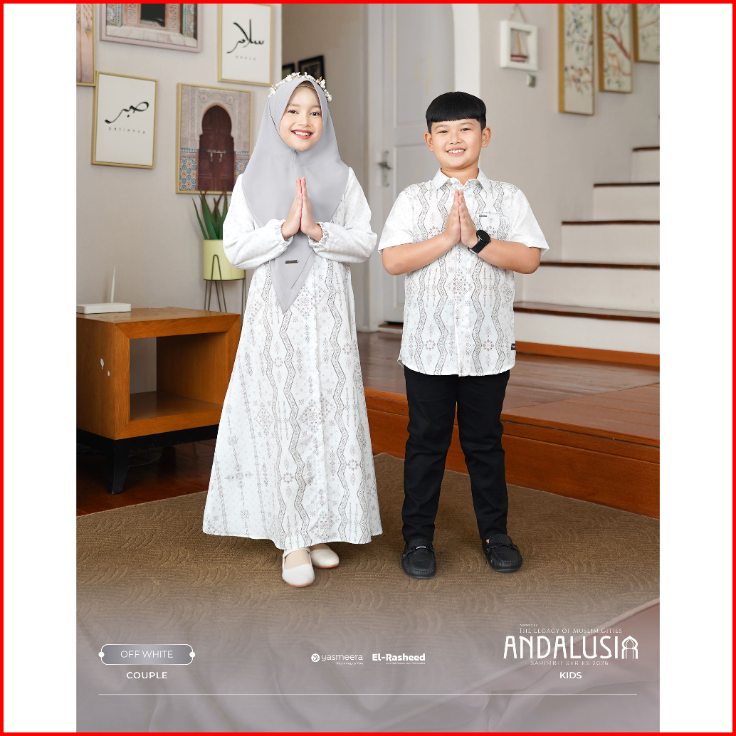 Ready Stock Sarimbit 2026 Andalusia Series - Off White - Family Set Keluarga Baju Lebaran Keluarga