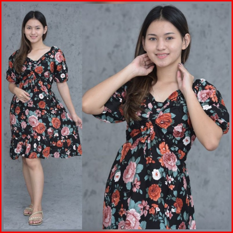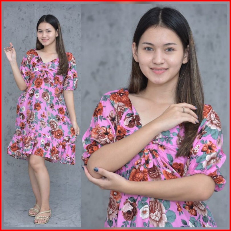 Daster Bali Sabrina Serut Dada Lengan Rok Ruffle