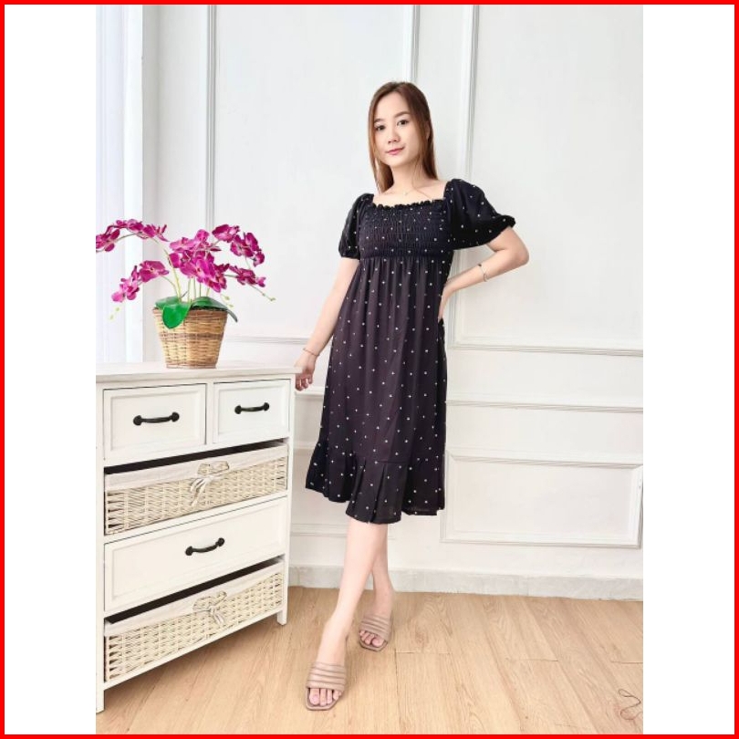 Daster Bali Jumbo Pendek Zaskia Polka Mini Hitam