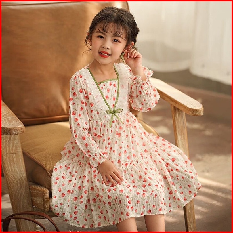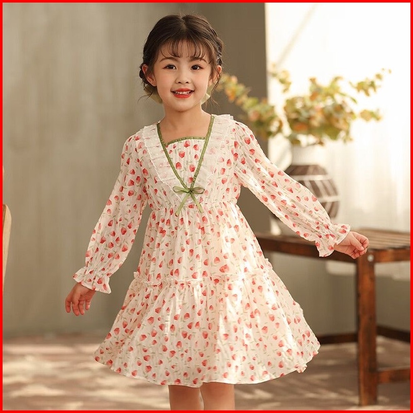 Princess Kesli 2-11 Tahun Gaun Sifon Anak Perempuan Paviliun Tonge 2025 Pakaian Anak Musim Semi Gaun Putri Renda Baru Un
