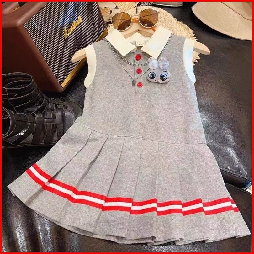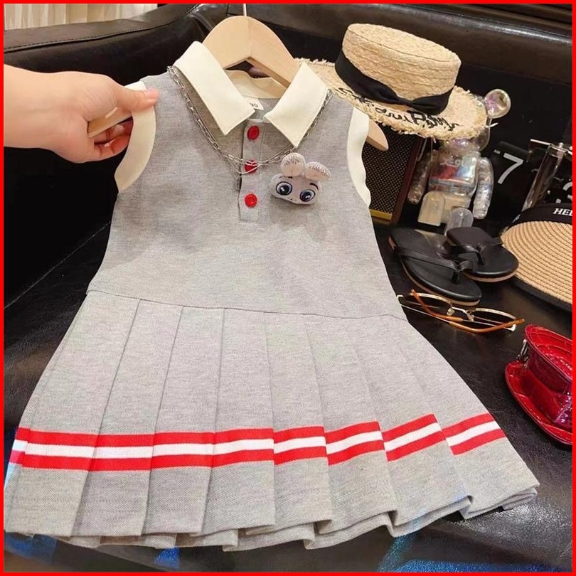Princess Kesli 2-11 Tahun Gaun Polo Shirt Tanpa Lengan Anak Perempuan Gaya Kuliah Kartun Hello Kitty Gaya Baru 2026