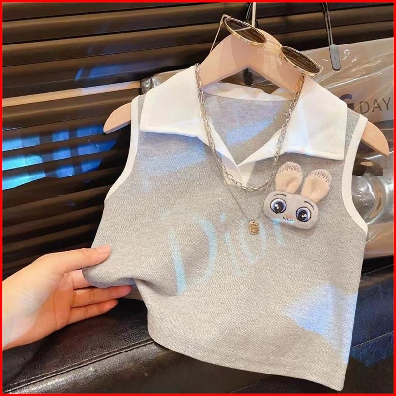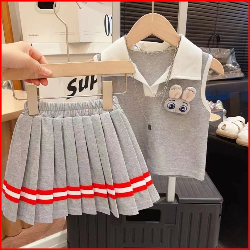 Princess Kesli 2-11 Tahun Setelan Resmi Kelinci Perempuan 2025 Gaya Barat Kerah Polo Tanpa Lengan Atasan Rok Lipit Gaya