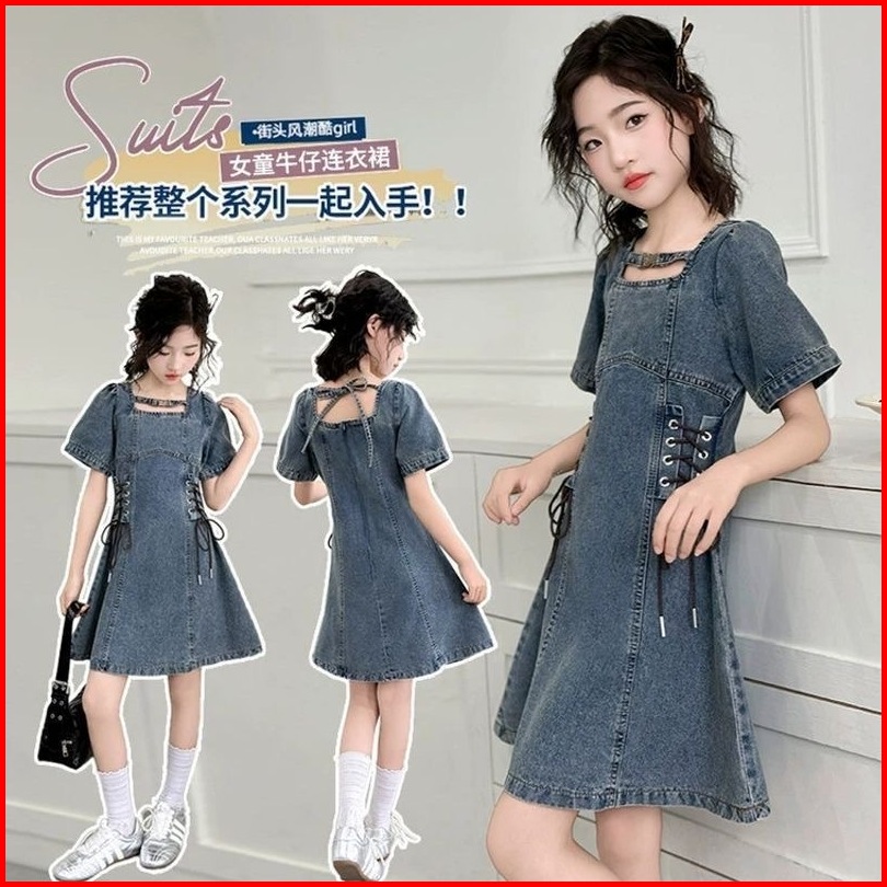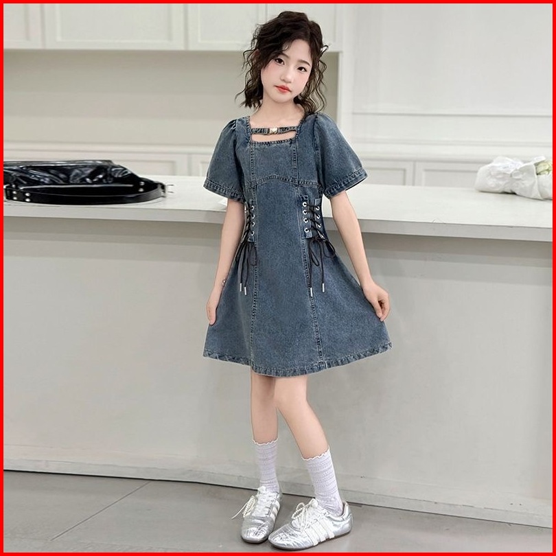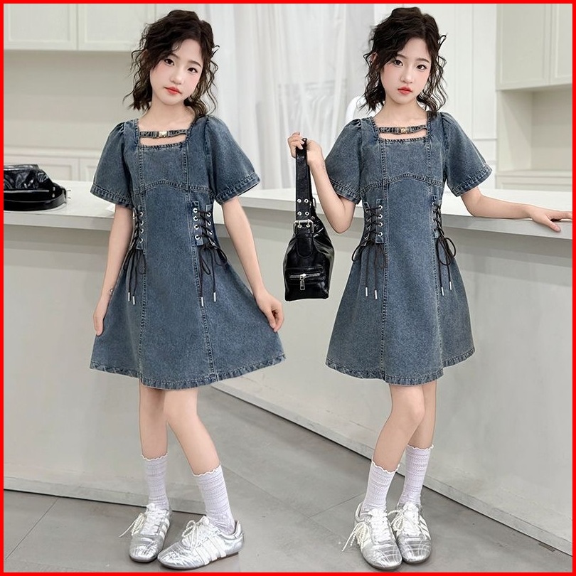 Princess Kesli 3-13 Tahun Gaun Anak Perempuan Musim Panas 2025 Baru Gadis Tipis Lembut Sedang Dan Besar Anak-anak Rok Ta