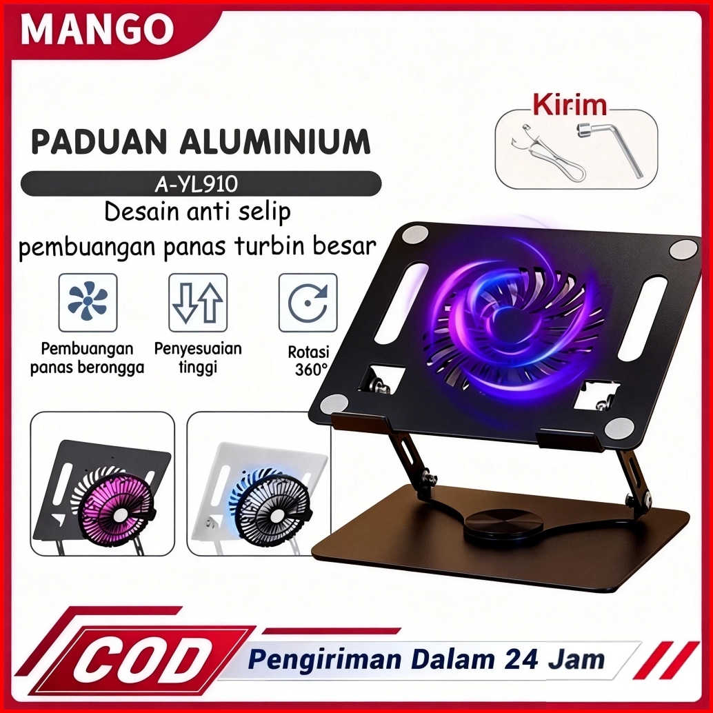 Stand Laptop Rotasi 360 Paduan Aluminium Kipas Laptop Cooling Pad Pendingin Portabel Dudukan Laptop Stand Holder