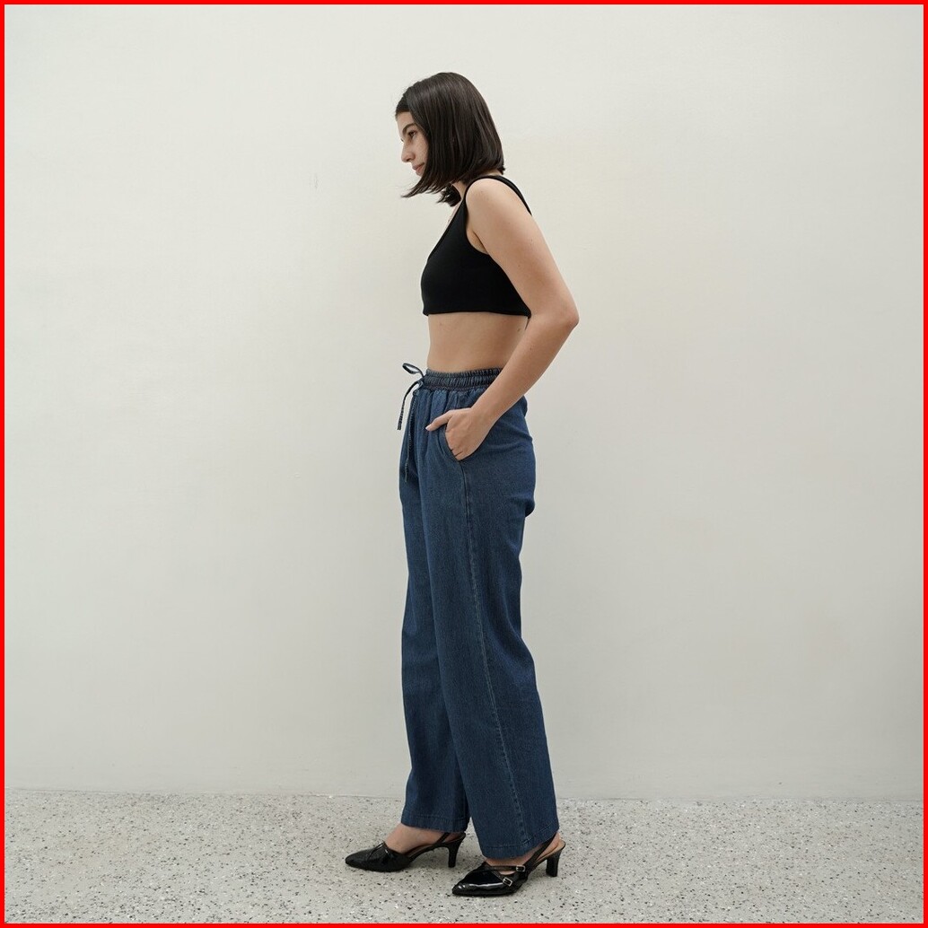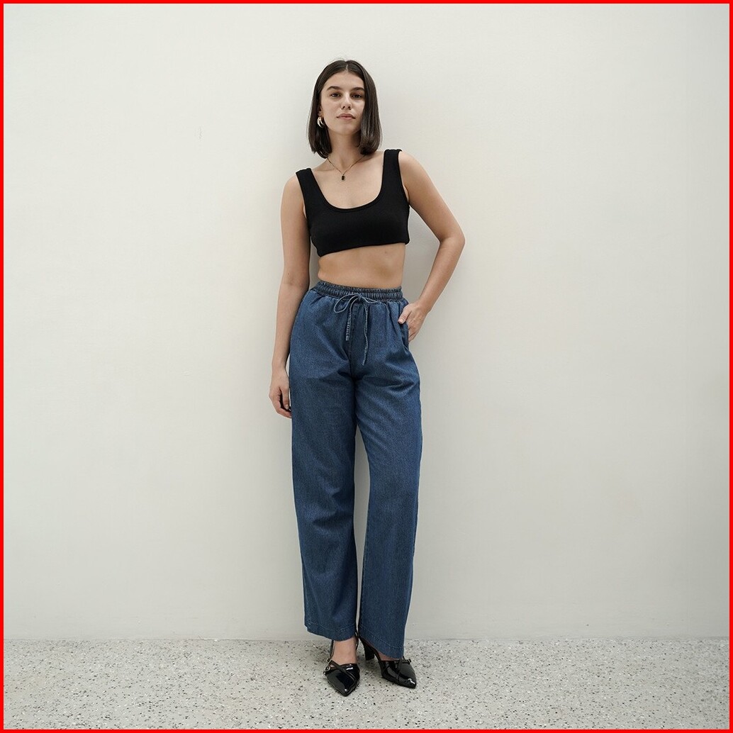 Tutuloph Dion Kulot Pants Kulot Celana Karet Kantor Highwaist Pants Denim Top Jeans - Denim Collection Bawahan Denim All