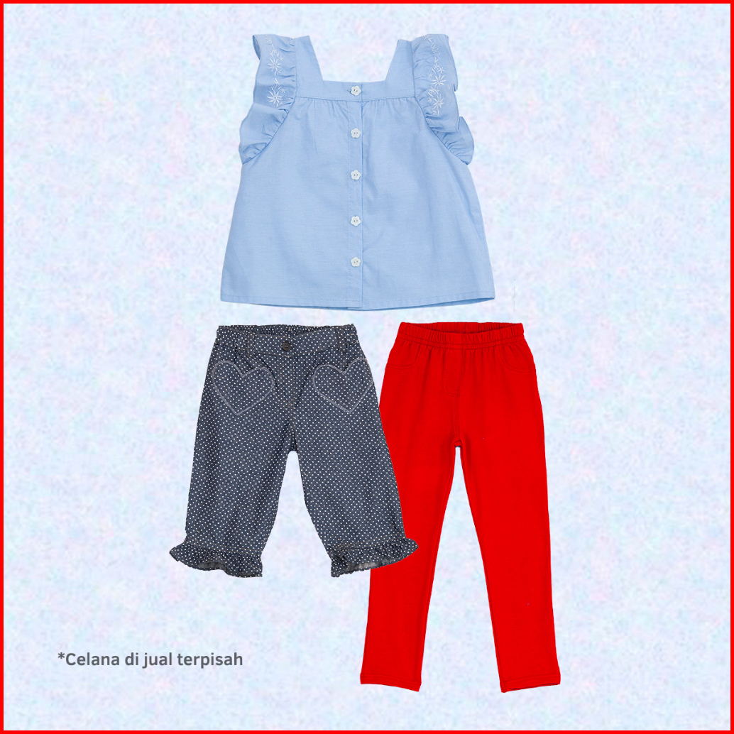 Torio Ruffle Sleveless Blouse Denim - Atasan Anak Perempuan