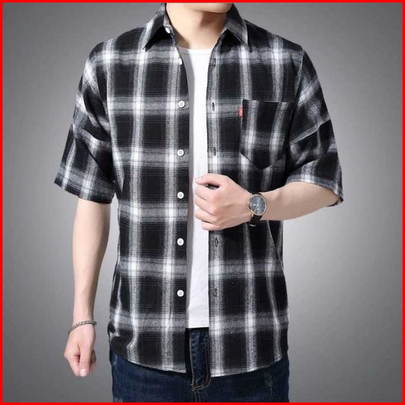 Kemeja Flanel Pria Lengan Pendek Kualitas Premium