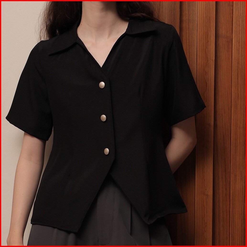 Tutuloph Lucia Top Atasan Kemeja Wanita Casual Fashion Kantor Blouse Kancing Lengan Pendek Top Bigsize