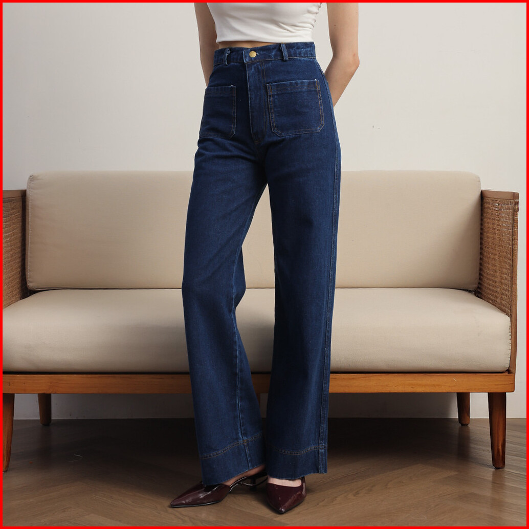 Tutuloph Kana Pants Celana Jeans Kantong Depan Bawahan Wanita Denim Jeans - Denim Collection Celana Highwaist Kulot Jean