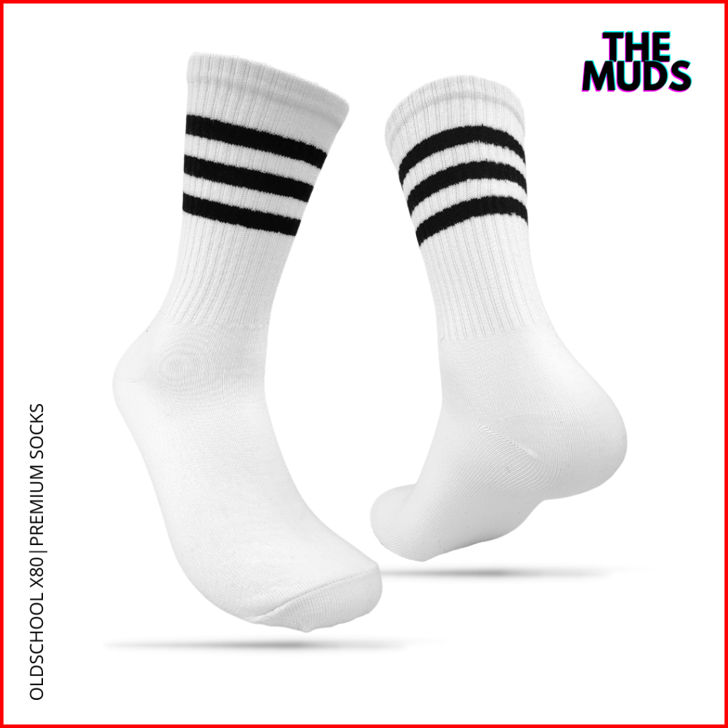 The Muds - Kaos Kaki Oldschool Motif Strip Hitam Putih - X80