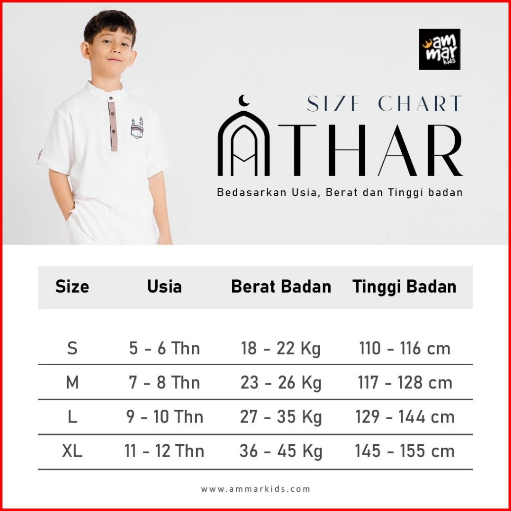Ammarkids - Kurta Athar Baju Setelan Muslim Anak Laki-laki 3 - 12 Tahun