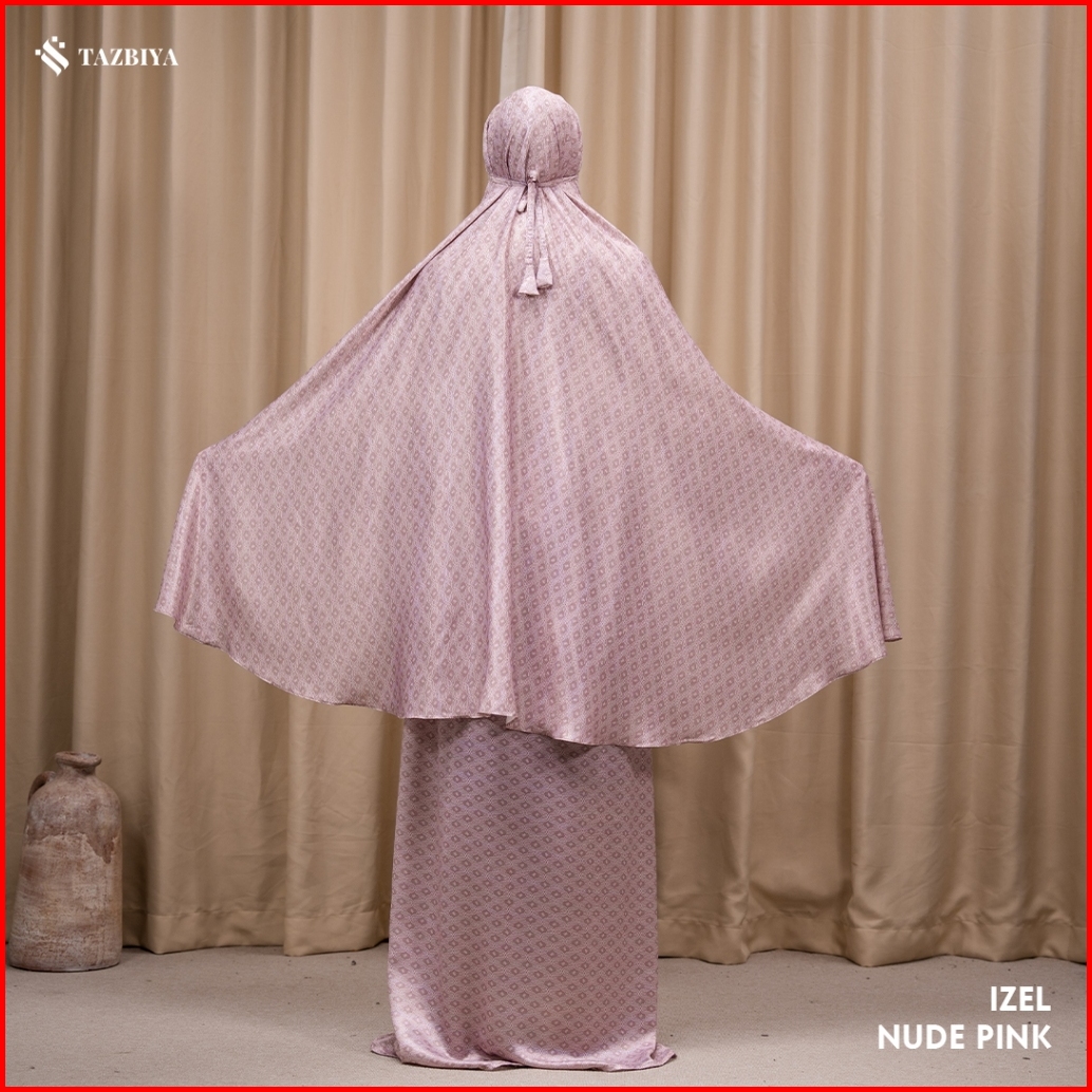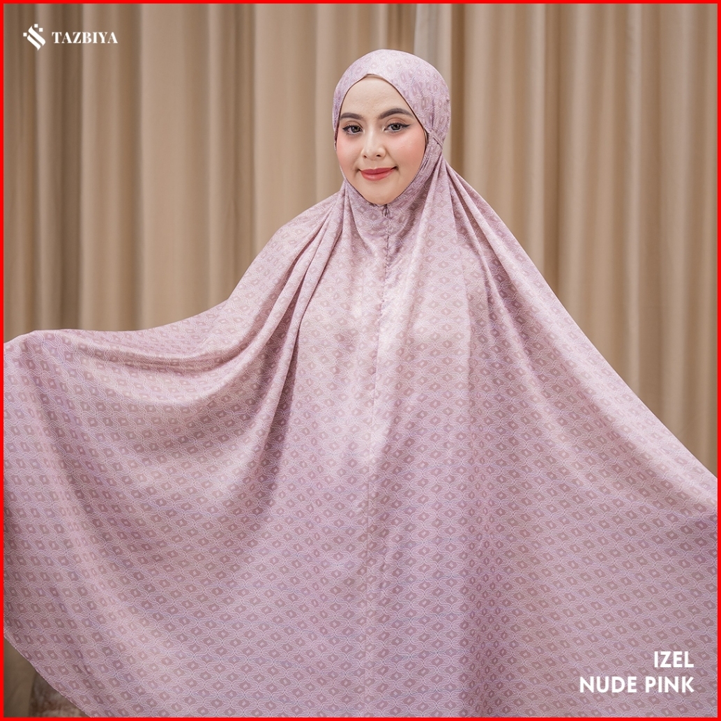 Tazbiya Mukena Silk Premium Izel Series Mukena Silk Motif Monogram Free Sajadah Muka Pouch Premium Cantik Packaging Box