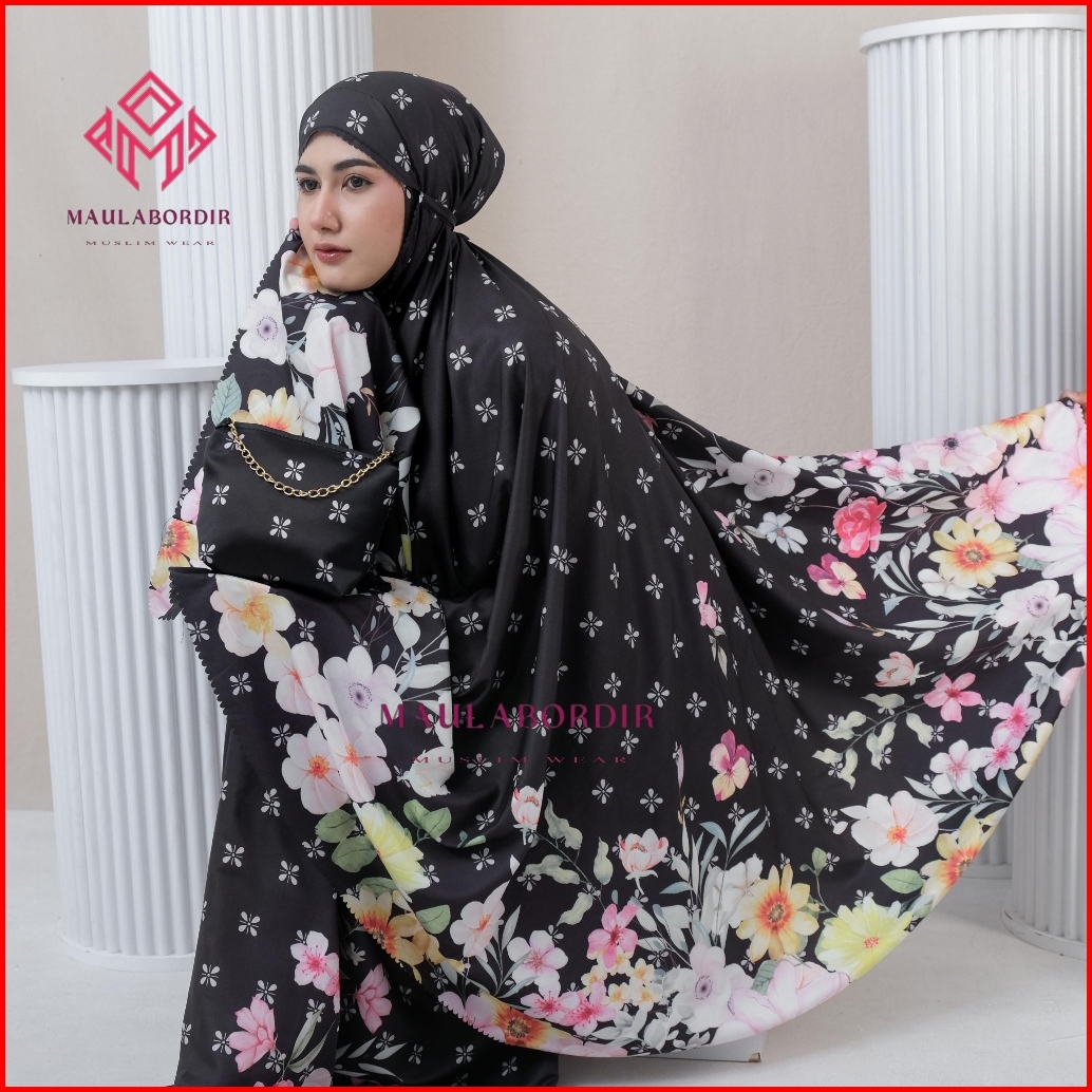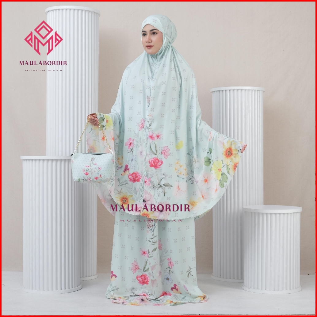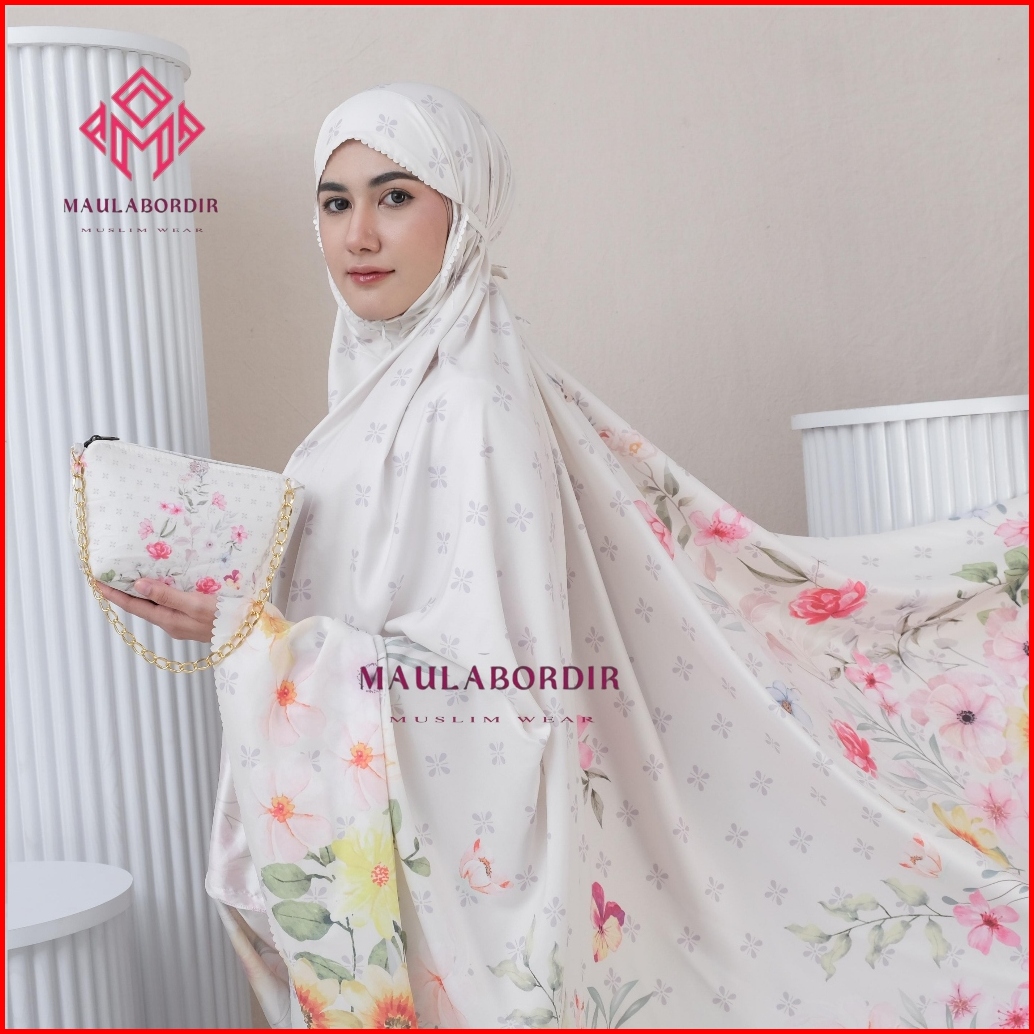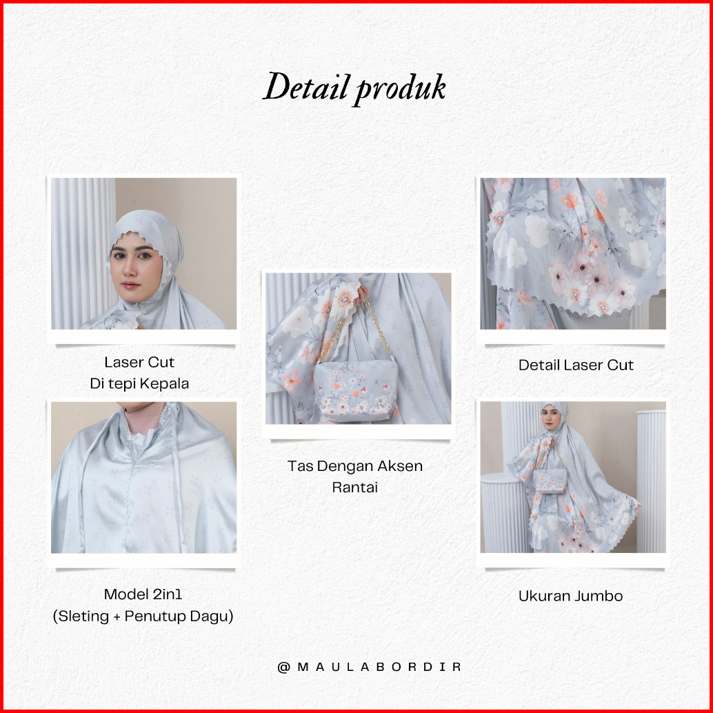 Maulabordir - Mukena Dewasa Silk Premium 2in1 Jumbo Penutup Dagu New Motif Lasercut Hameda Series