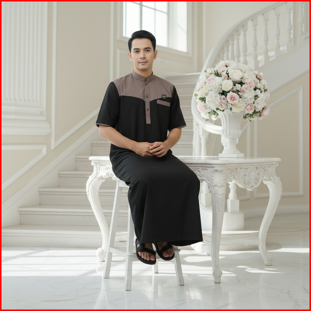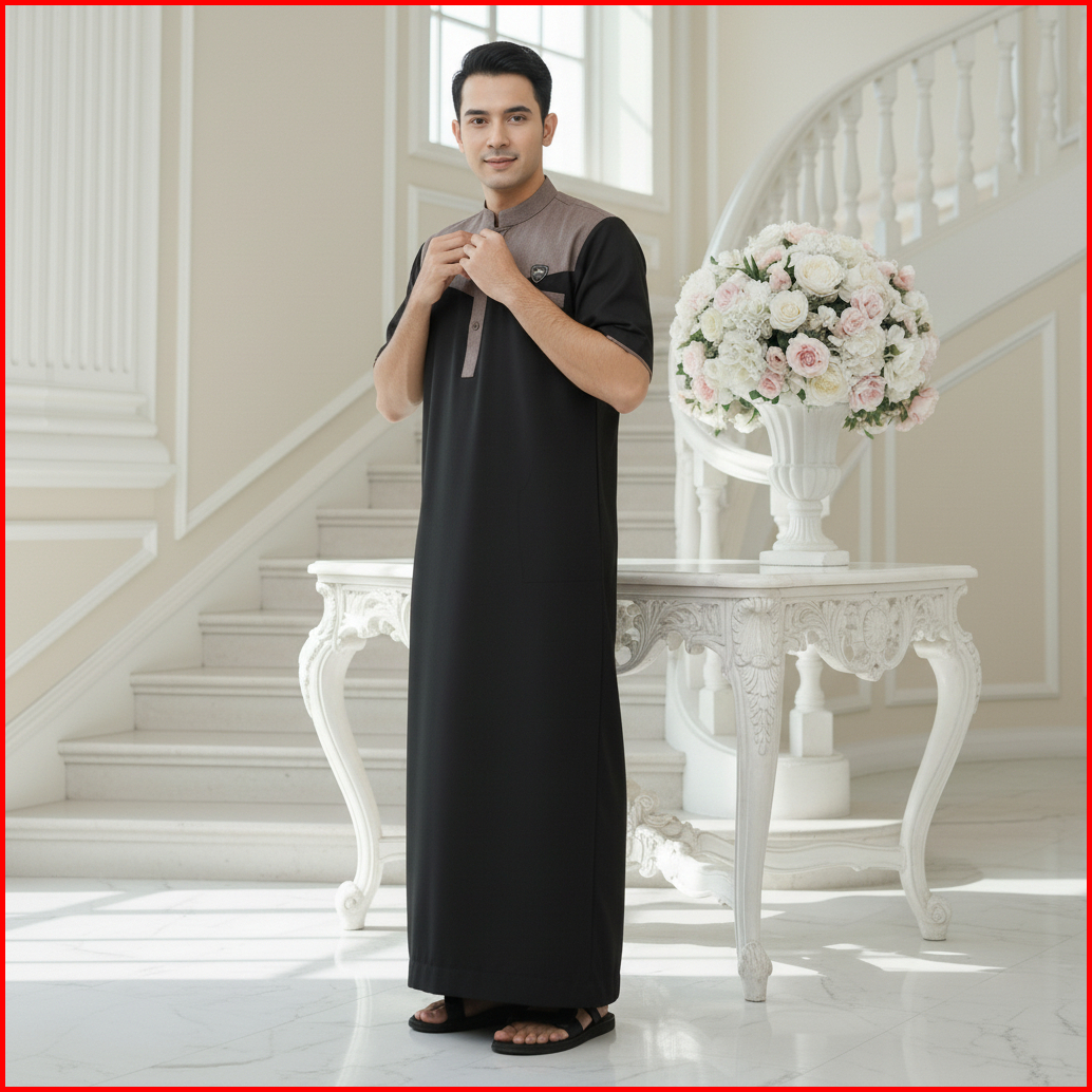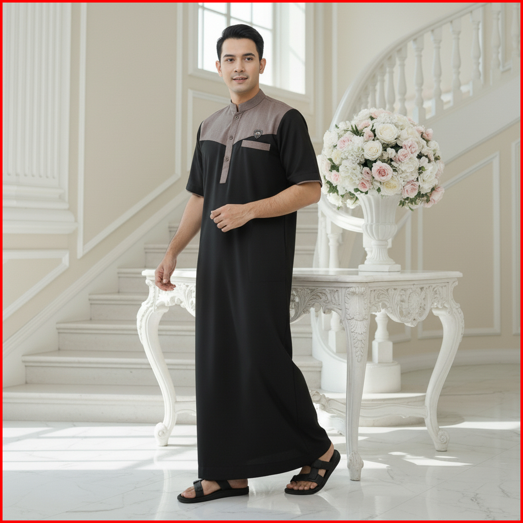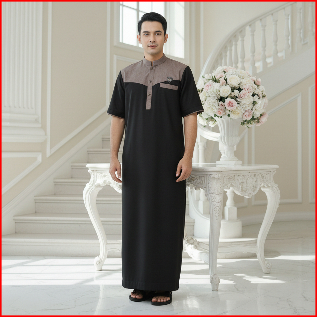 Jubah Pria Gamis Laki Laki Dewasa Lengan Pendek Bahan Katun Madinah