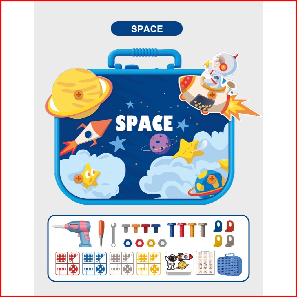 Mk337 Mainan Edukasi Kreatif Anak - Kotak Puzzle Listrik Dengan Bor Dan Alat Rakitan Tema Dinosaurus Unicorn Dan Space