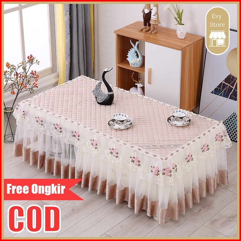 Evy Store Taplak Meja Persegi Panjang Renda Taplak Meja Kopi Modern Renda Taplak Meja Tamu Renda Tutup Sampai Kaki Kuali