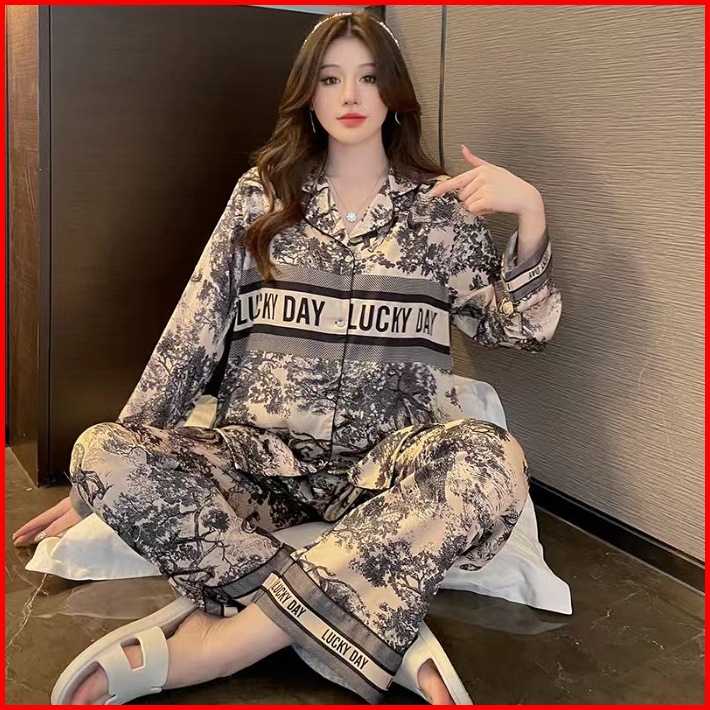Sleepwear Wanita Piyama Satin Premium Korea Style Baju Tidur Wanita Lengan Panjang Celana Panjang