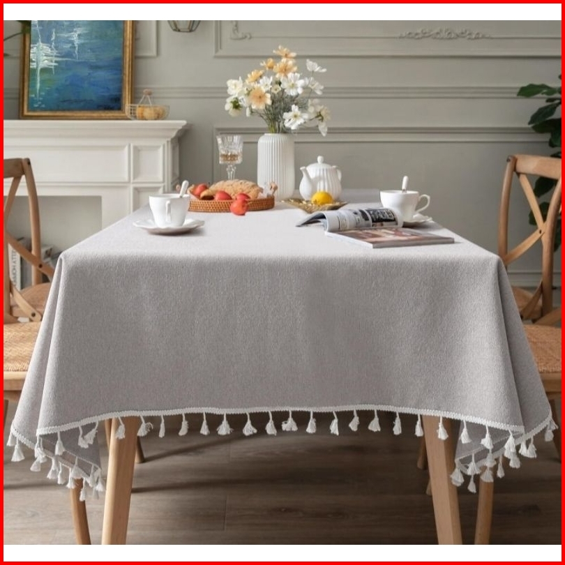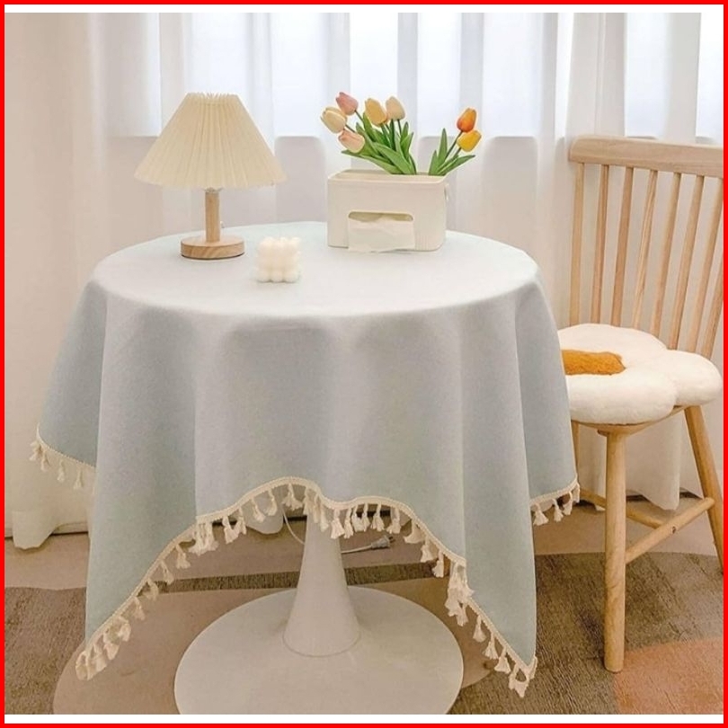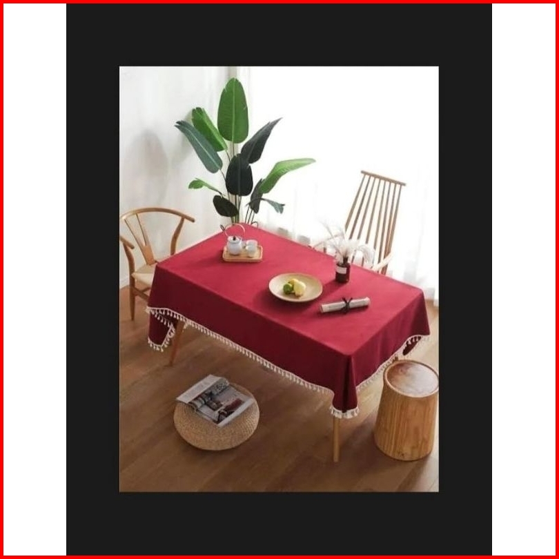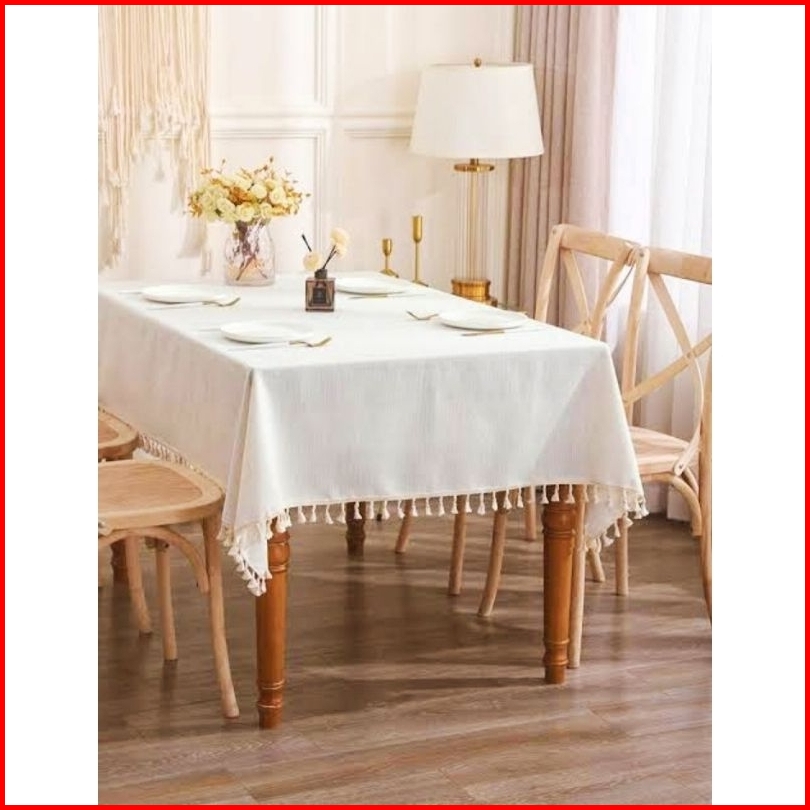 Taplak Meja Makan Motif Polos Satin Dengan Renda Rumbai