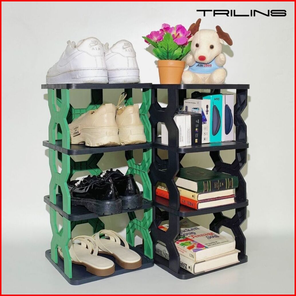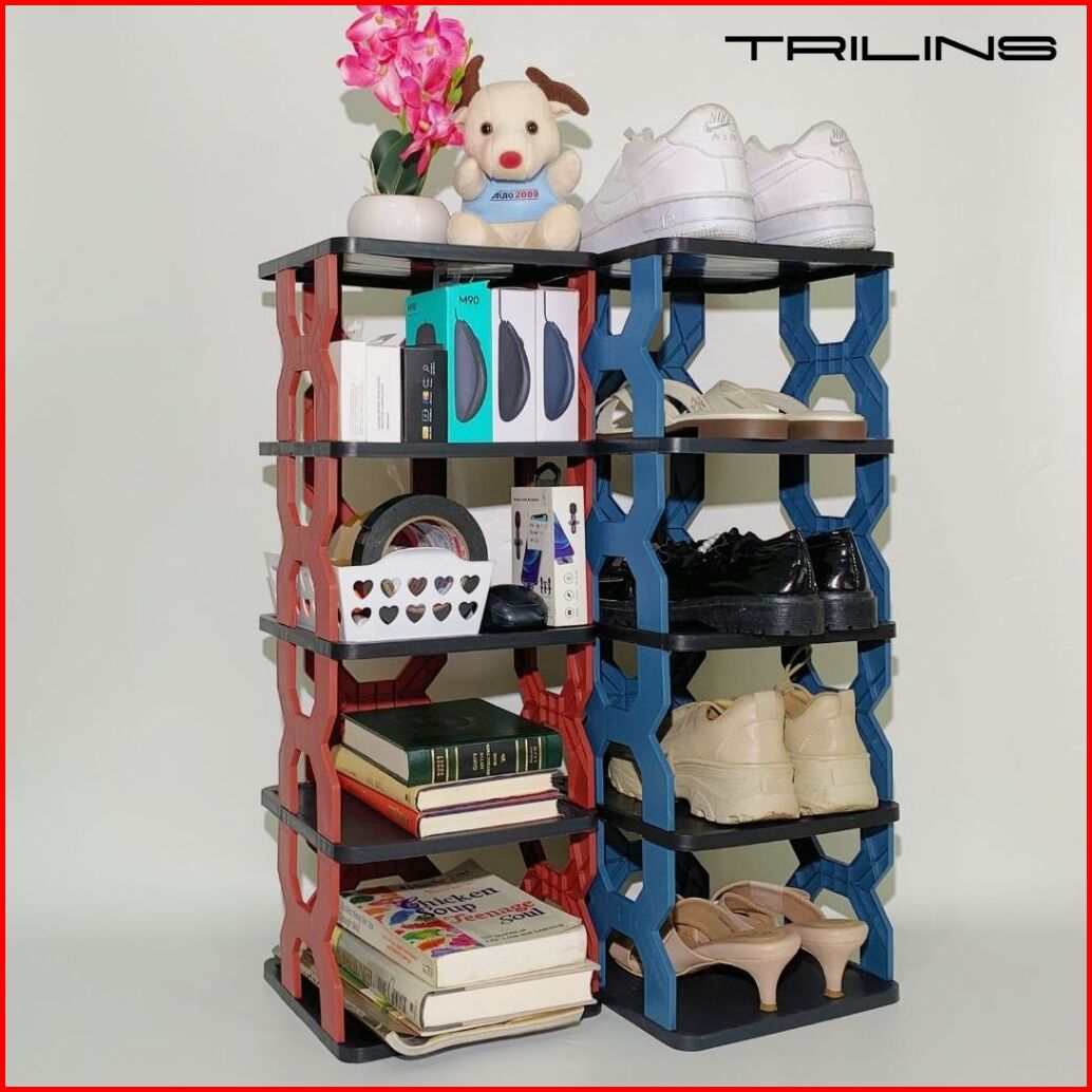 Rak Sepatu X Korea Plastik Tempat Penyimpanan Sandal Boneka Zig Zag Kokoh 4 5 Tingkat - Black Base