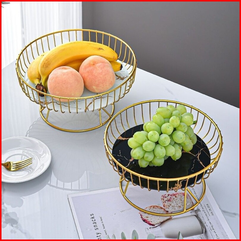 Gan Marble Hitam Keranjang Buah Ss304 Tempat Buah Wadah Buah Hidangan Permen Nampan Makanan Ringan