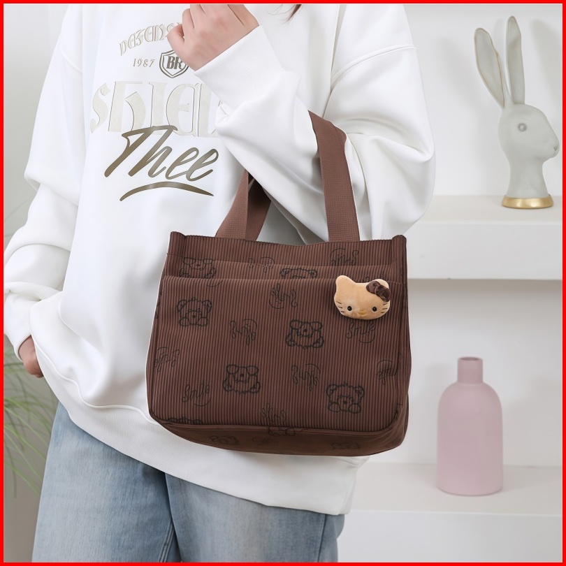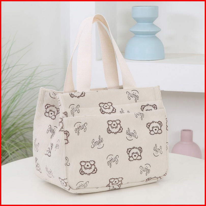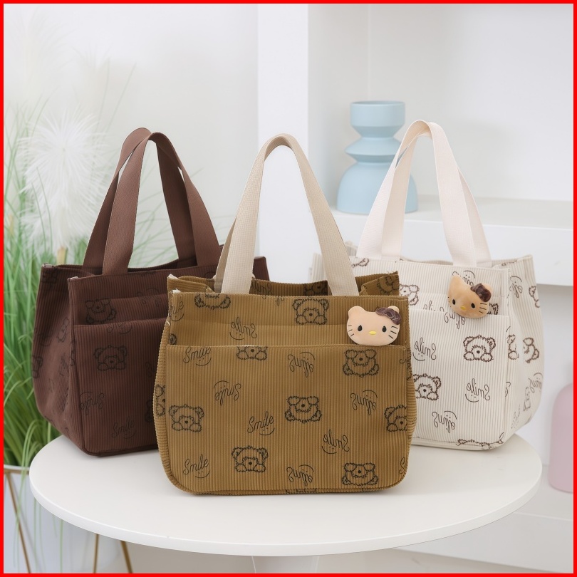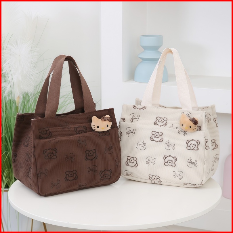 Tas Bento Wanita Kartun Tas Jinjing Tote Dari Kanvas Tahan Panas Untuk Komuter Kerja