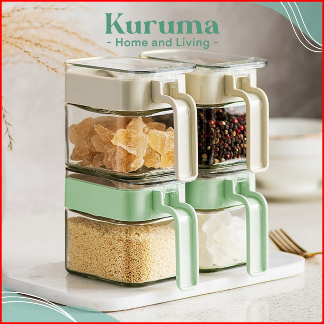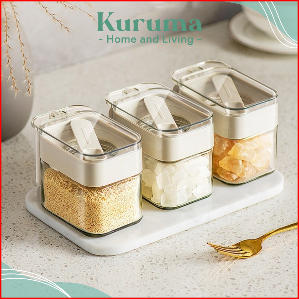 Kuruma - Moto Toples Kaca Gula Garam Minimalis Wadah Garlic Powder Modern Kontainer Bumbu Aesthetic