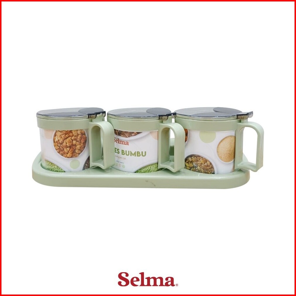 Selma Set 3 Pcs Michigan Tempat Bumbu Dapur - Hijau Seasoning Jar Toples Bumbu Dapur Bubuk Wadah Garam Lada Merica Black