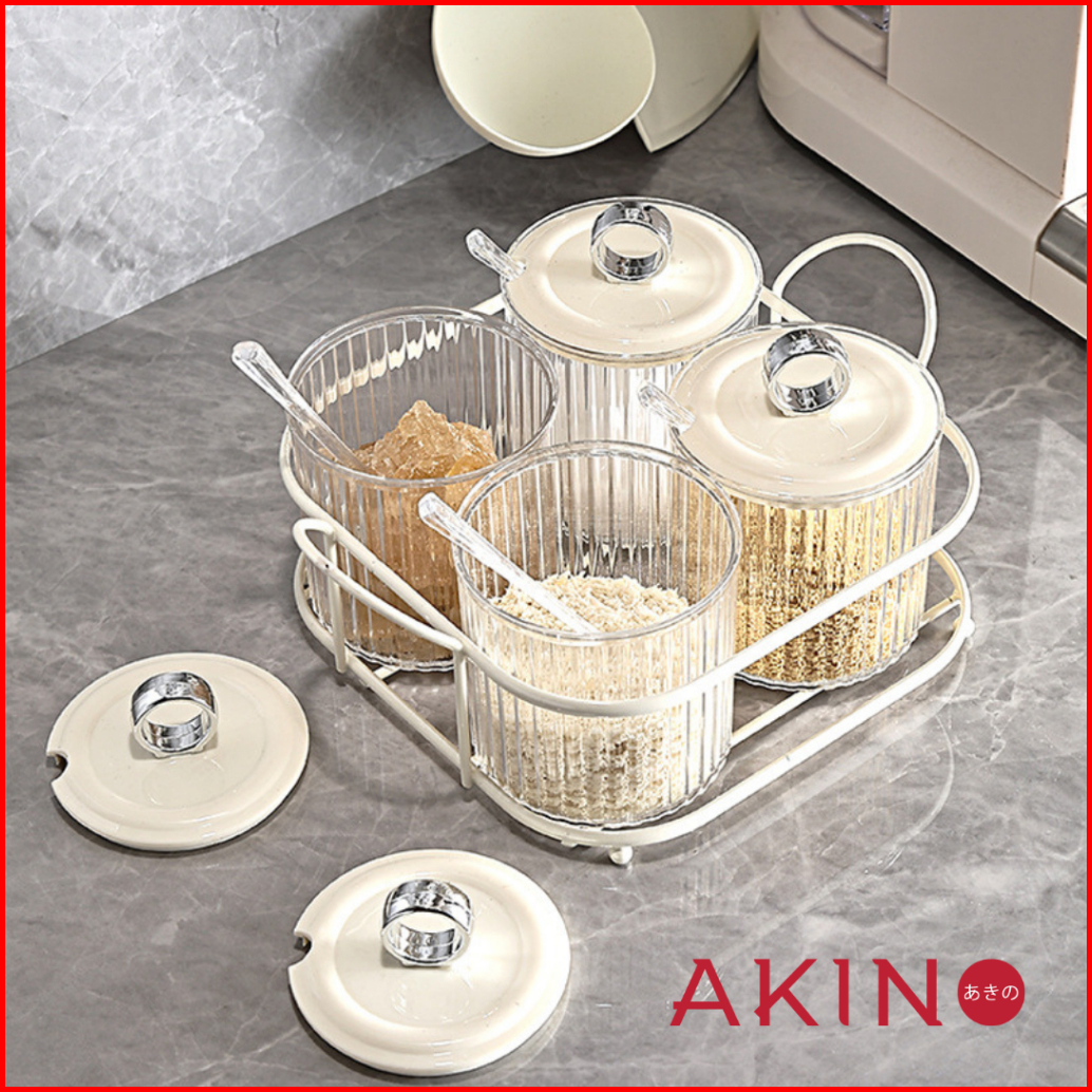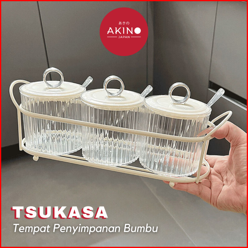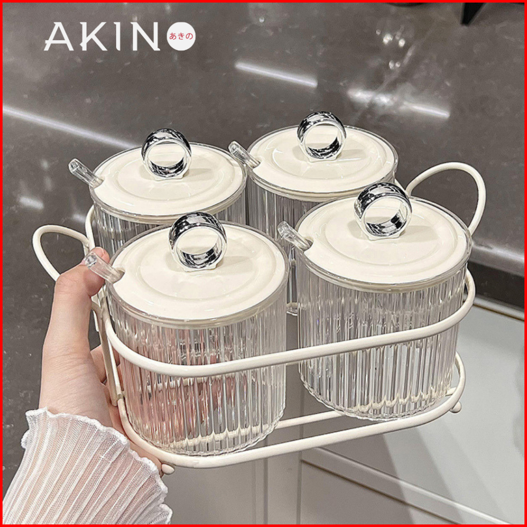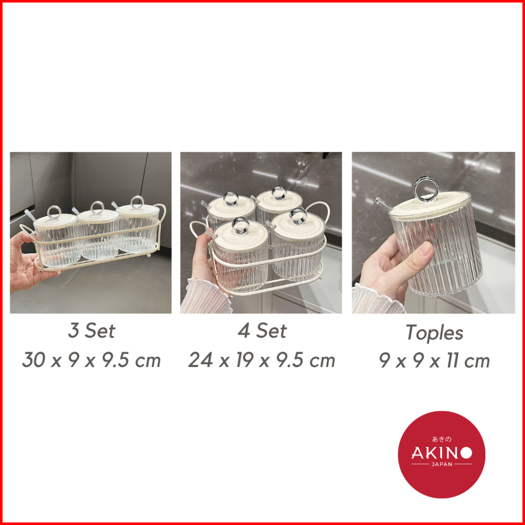 Akinotsukasa Wadah Bumbu Bersendok Toples Kaca Garam Dan Lada Tutup Praktis Spice Jar Serbaguna