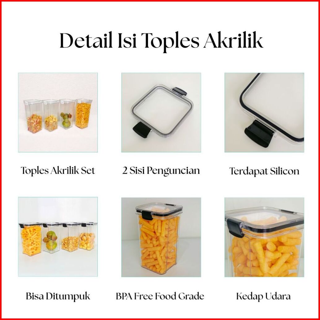 Paket Hemat Toples Plastik Kotak Bening Kontainer Snack Isi 4pcs Kedap Udara 1300ml 1800ml Murah