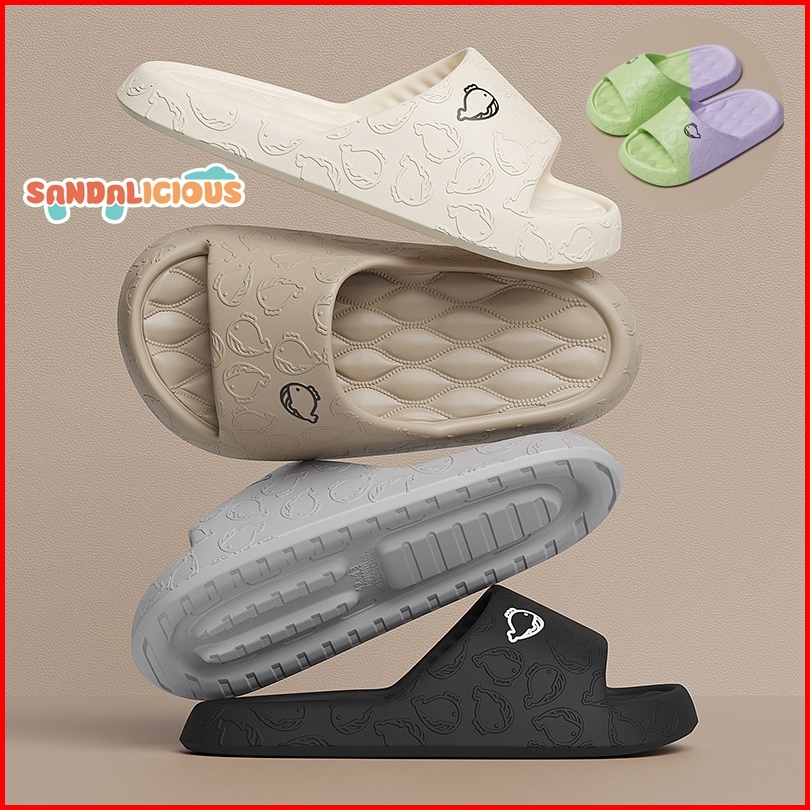 Sandal Slop Couple Jelly Texture Ikan Paus Import - Sendal Bahan Eva Ringan Empuk Anti Licin
