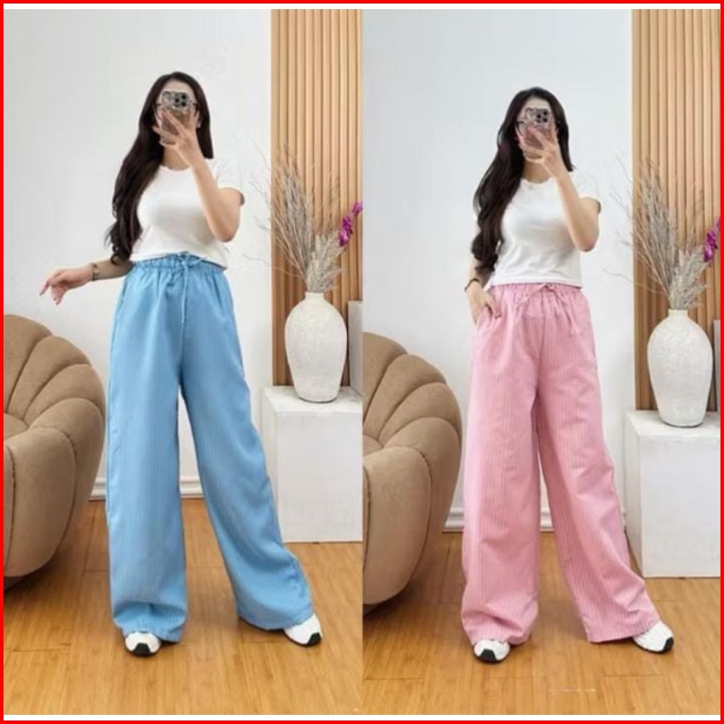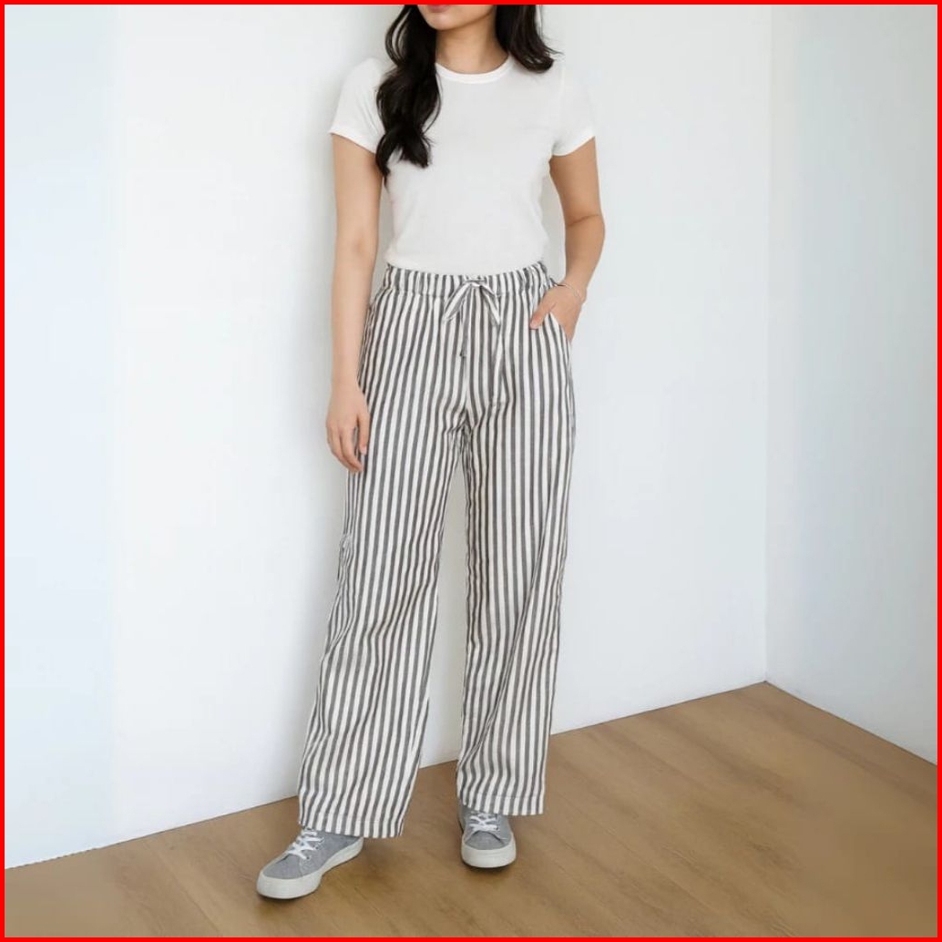 Everyday Pants - Stripe Pants - Celana Panjang Wanita Baggy Kantor Kuliah Motif Garis Kulot Stripe