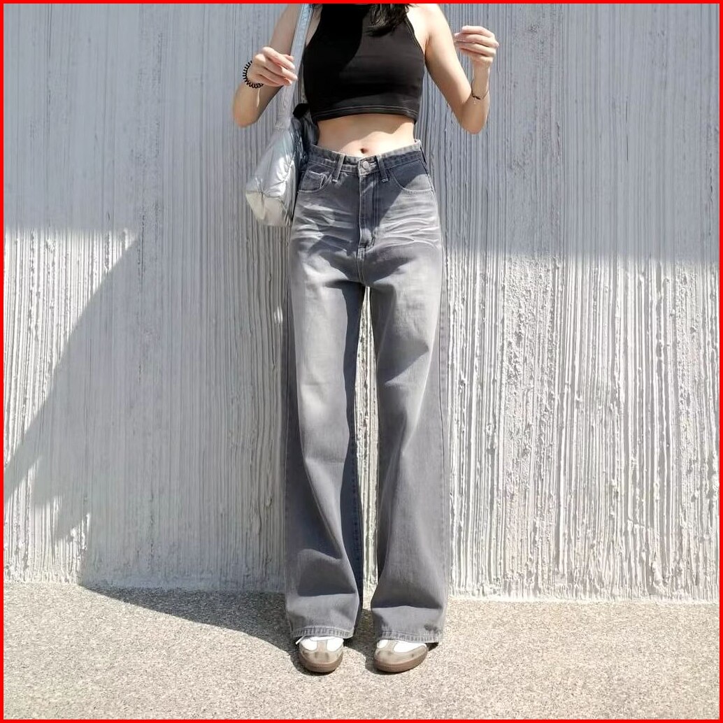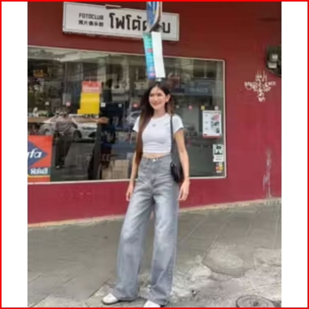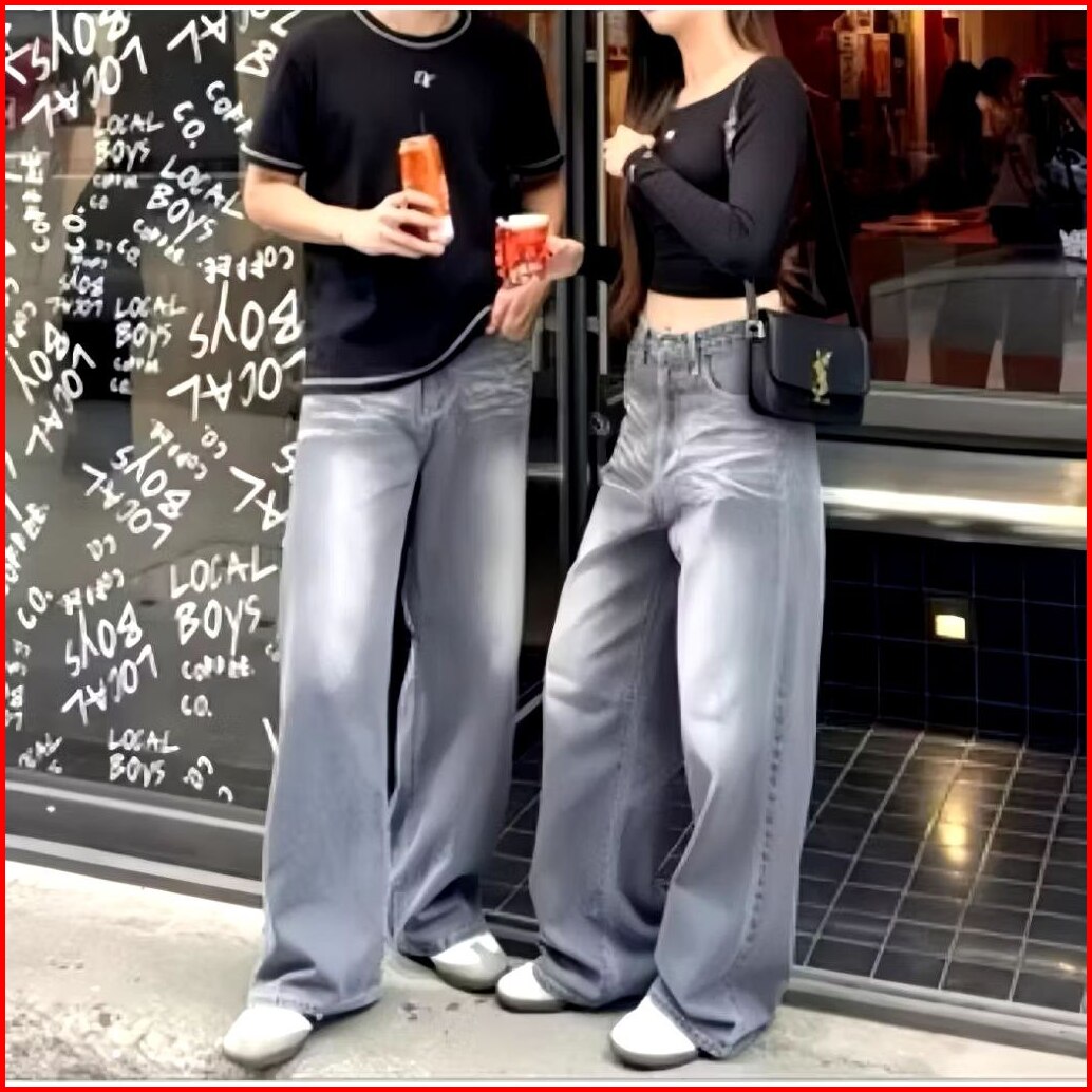 Celana Jeans Wanita Baggy Jeans Loos Wisker Longgar Gombrong