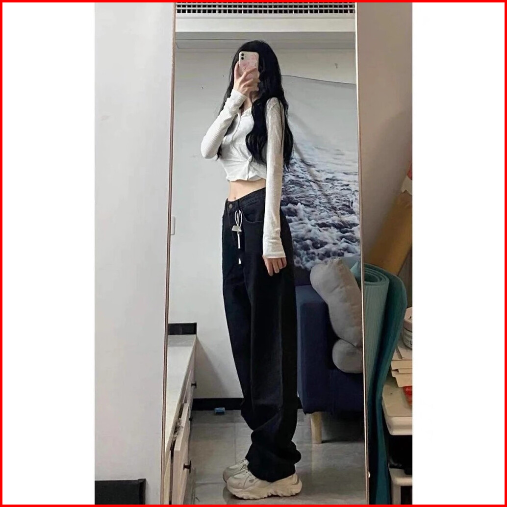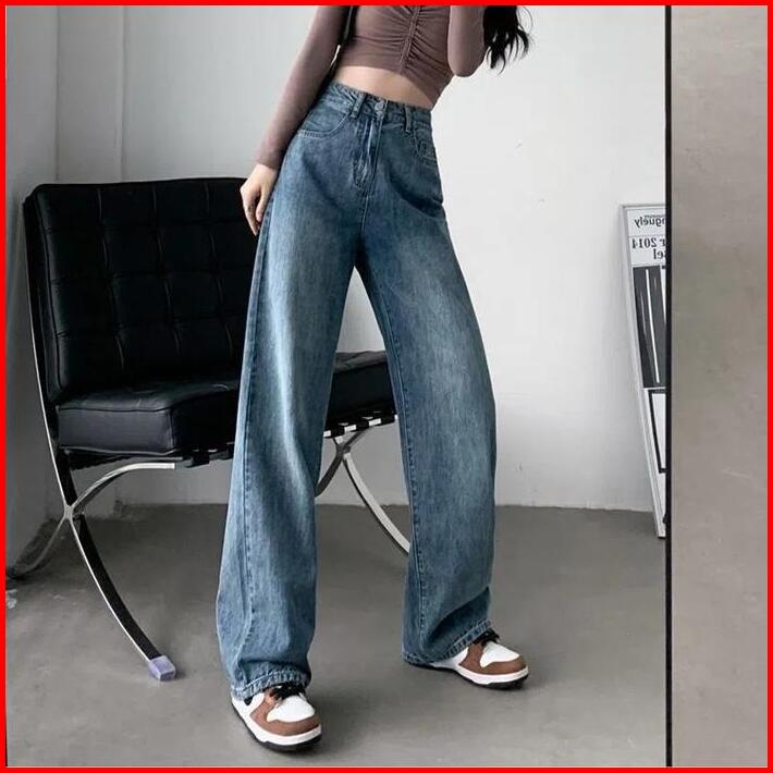 Lulu Jeans Celana Jeans High Waist Wanita Korean Style Jeans Baggy Pants Serbaguna Kasual Biru Retro