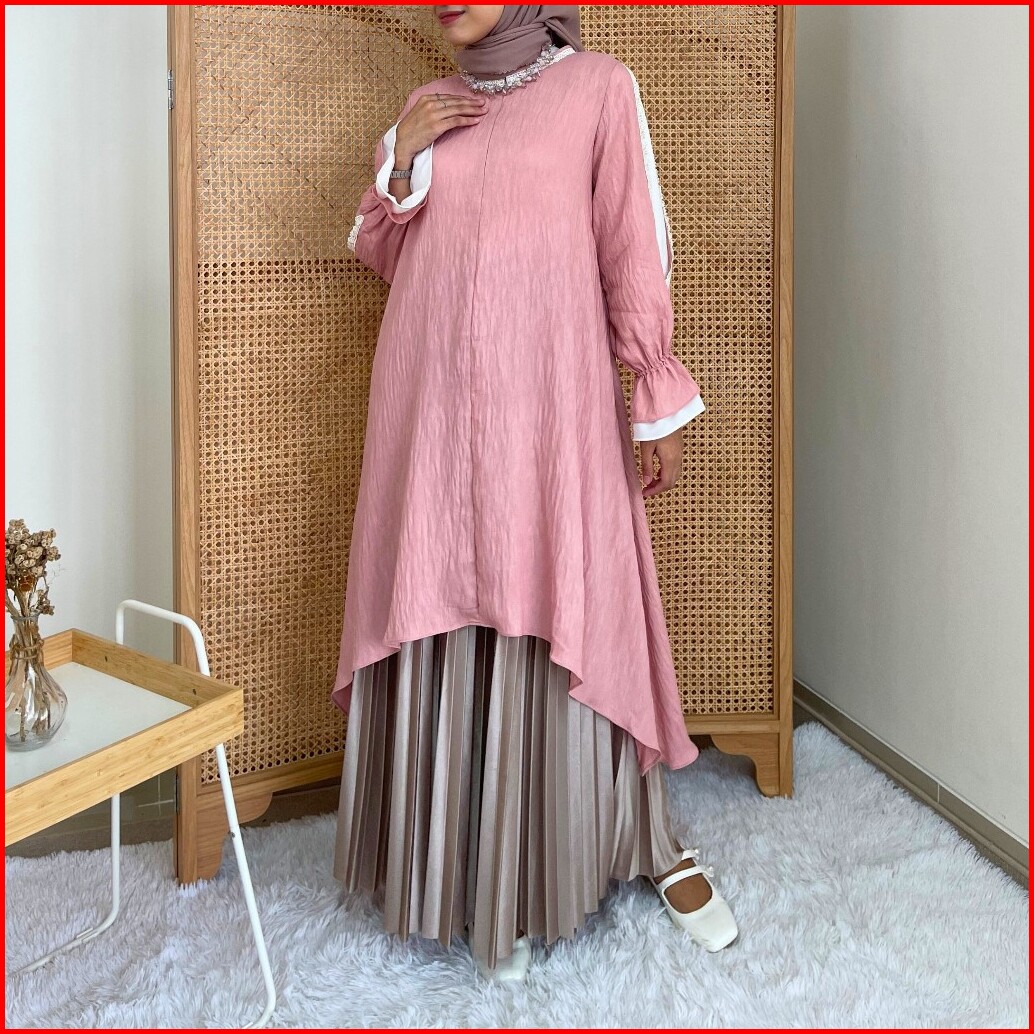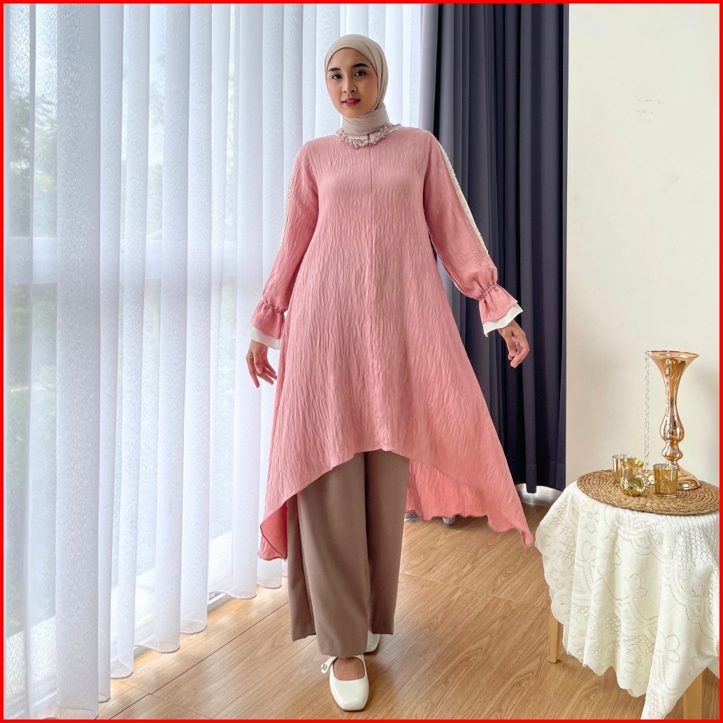 Eclemix Atasan Wanita Resleting Depan Tunic Reya Tunik Mewah Baju Pesta Kondangan