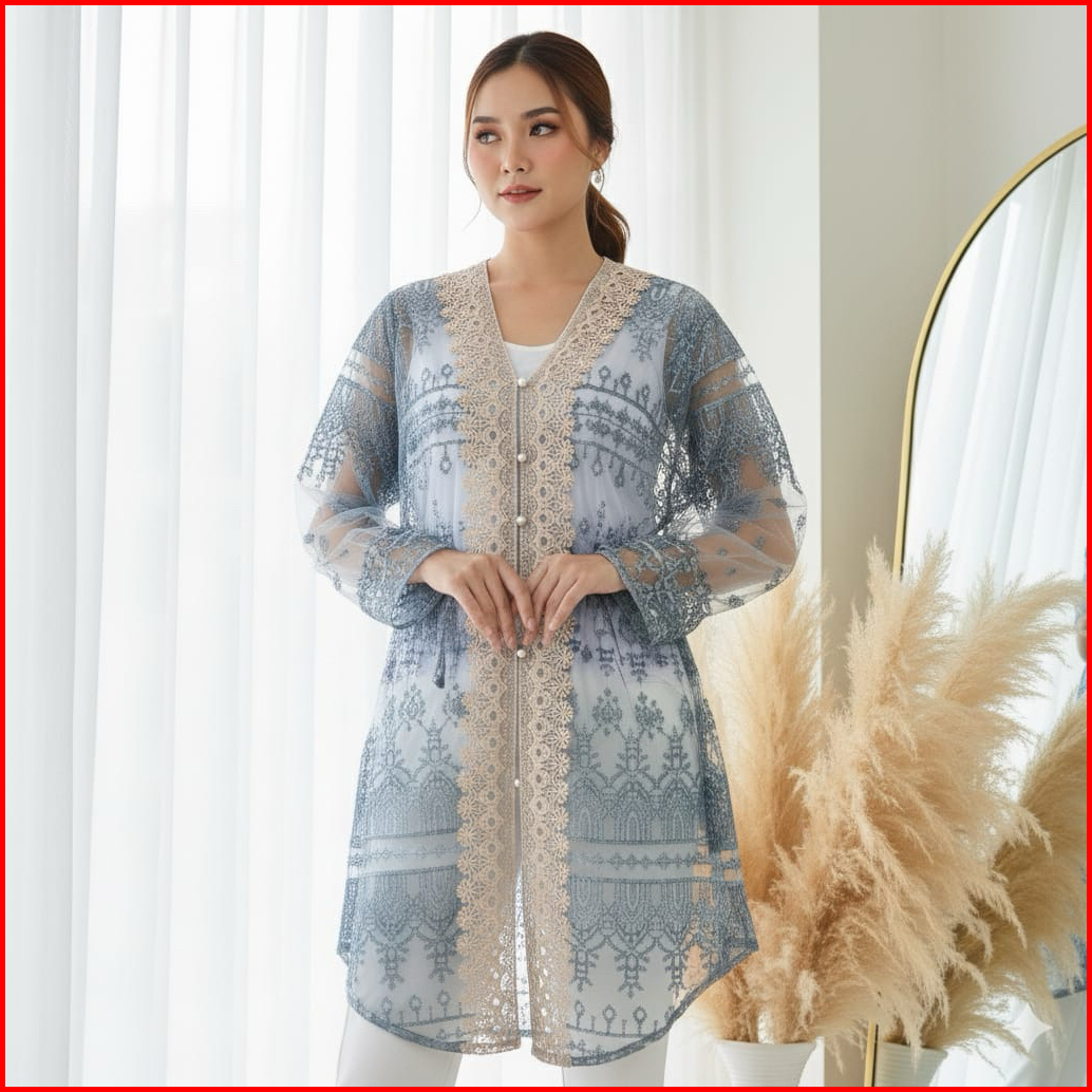 Amora Outer Kebaya Brokat Full Bordir Renda Kebaya Modern Outer Kondangan