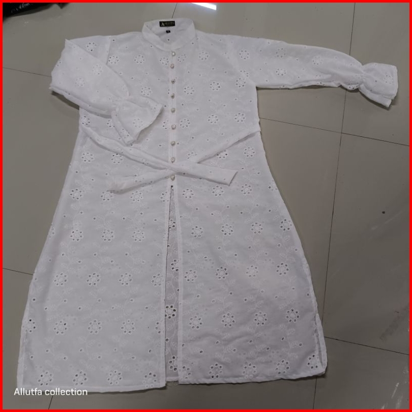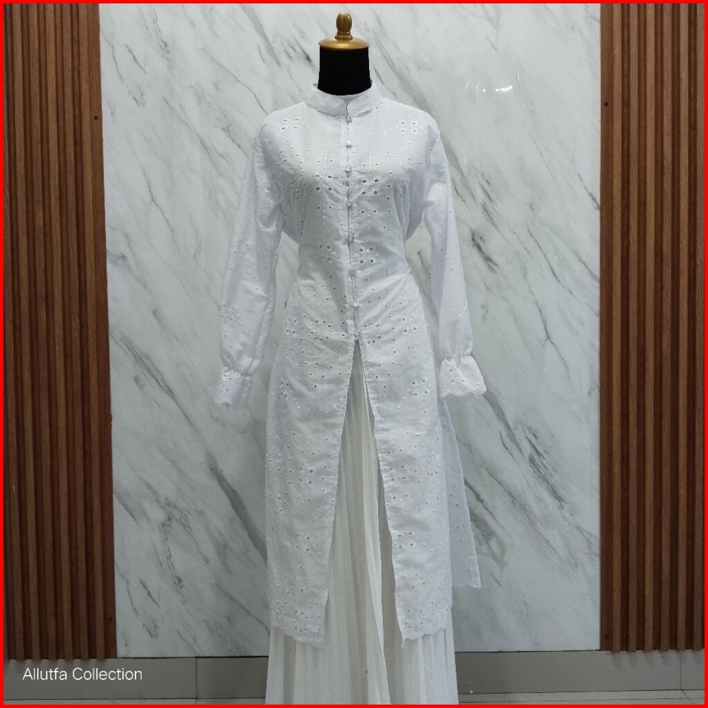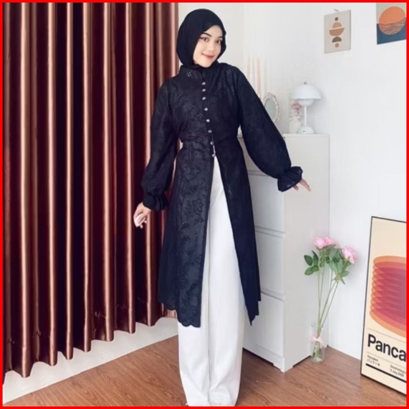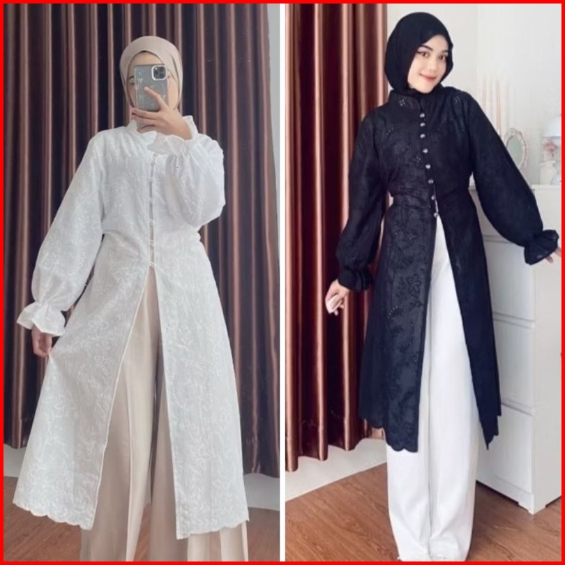 Atasan Tunik Katun Bolong Bordir Baju Katbol Wanita Kondangan Lebaran Wisudaan Tali Kancing