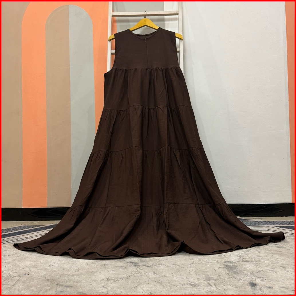 Dress Inner Outer Lekbong Katun Linen Lekbong Tanpa Lengan Kuntung Kutung Susun Umpak Depan Belakang