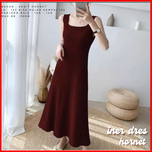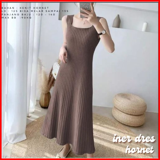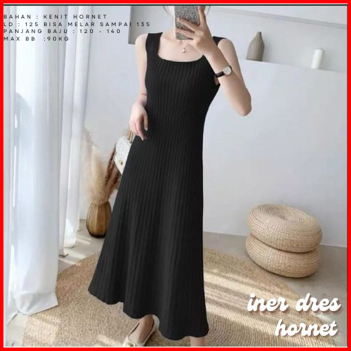Gratis Ongkir Iner Dress Korean Style Bahan Knit Hornet Ukuran Besar Terbaru