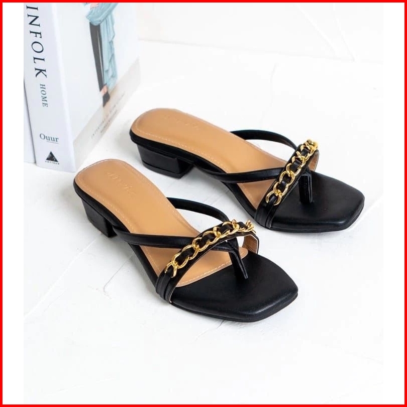 Sandal Wanita Kekinian Heels Sendal Cewek Hak Tahu Cewek 3cm Motif Asesoris Tali Rantai