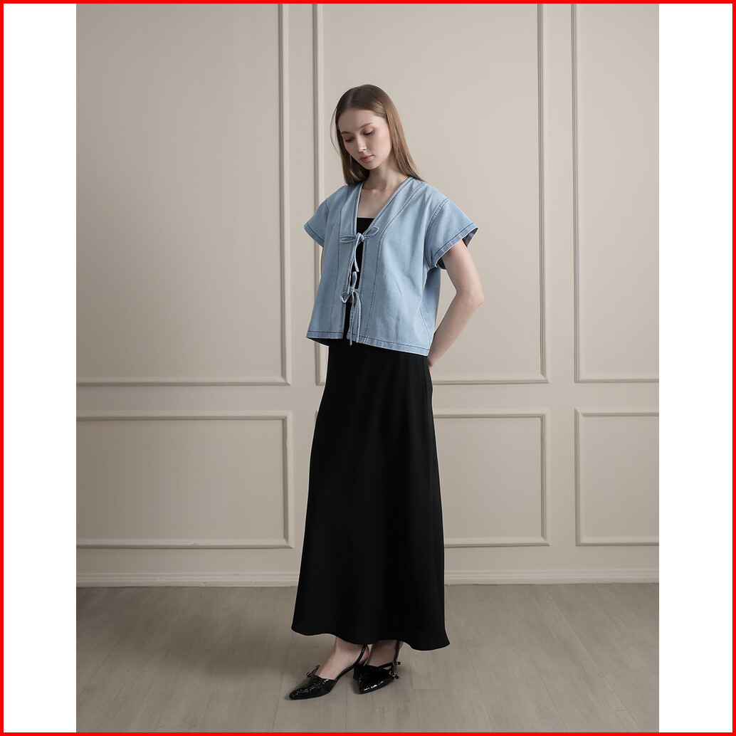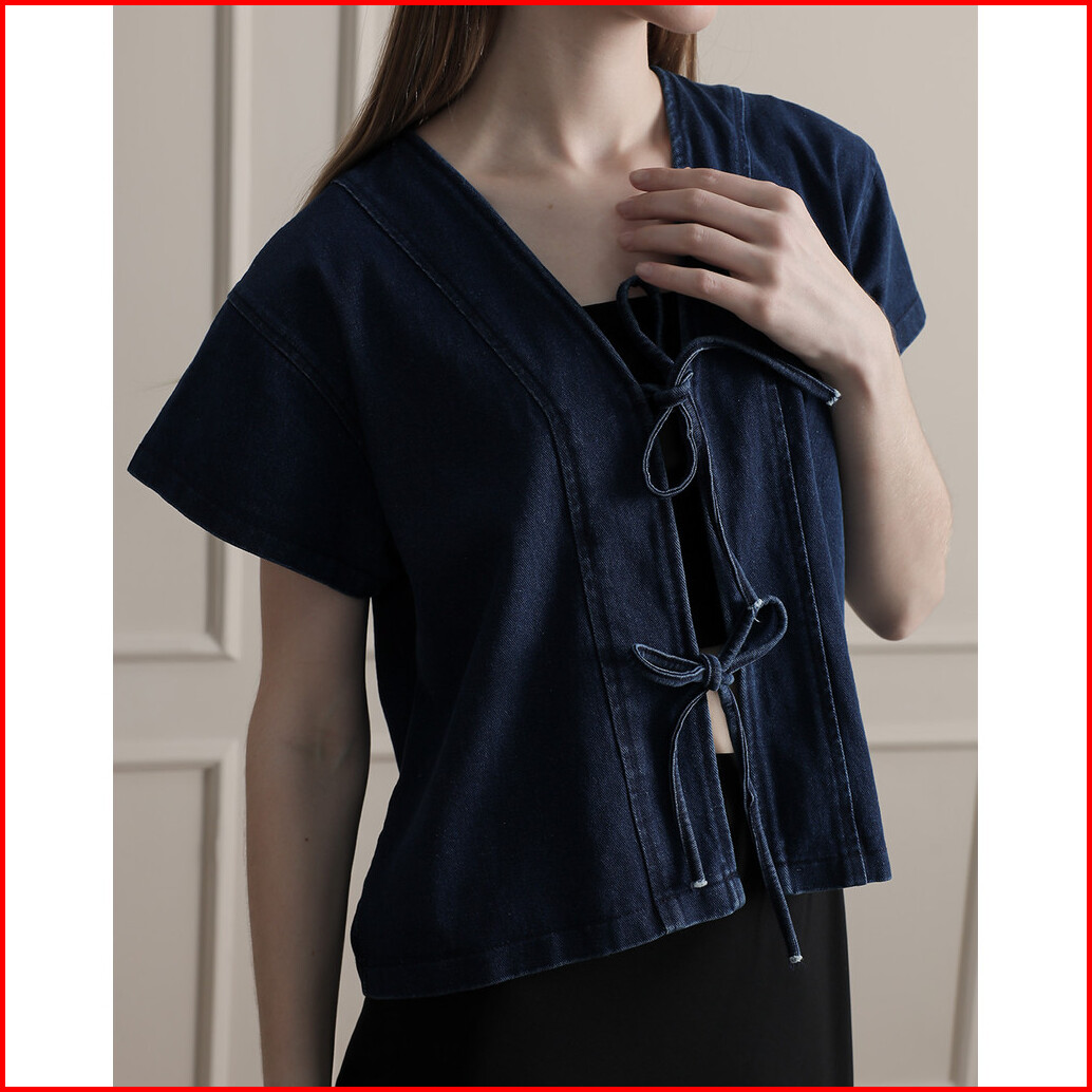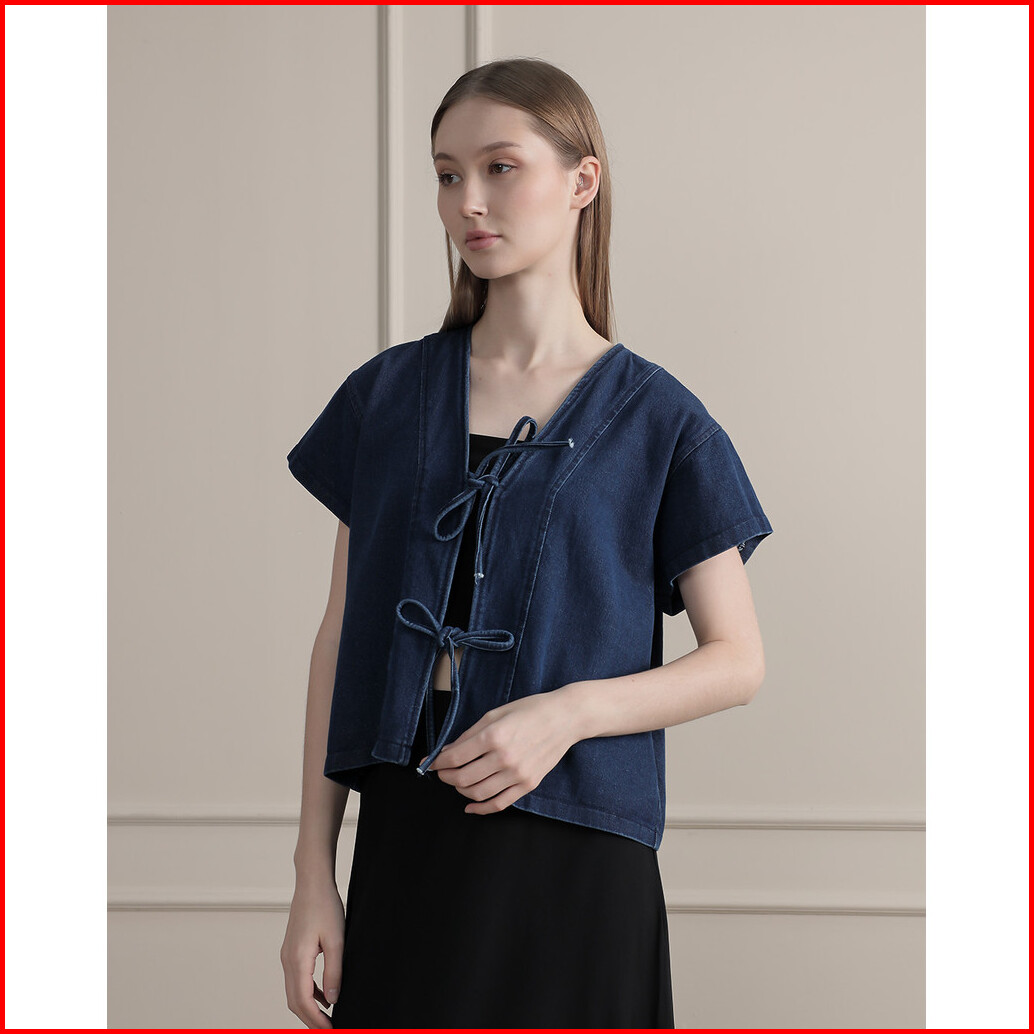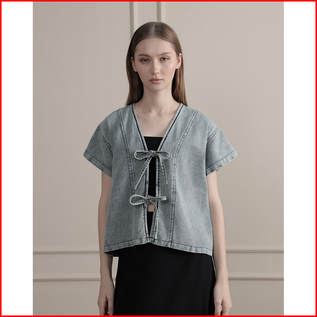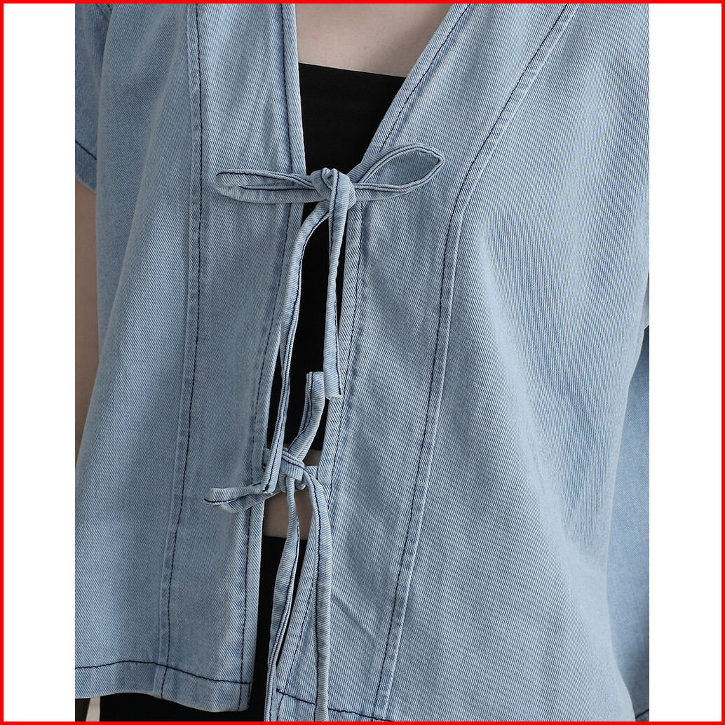 Tutuloph Claren Blouse Top Wanita Denim Jeans - Denim Collection Denim Tali Pita Lengan Pendek Casual Fashion Normal Big
