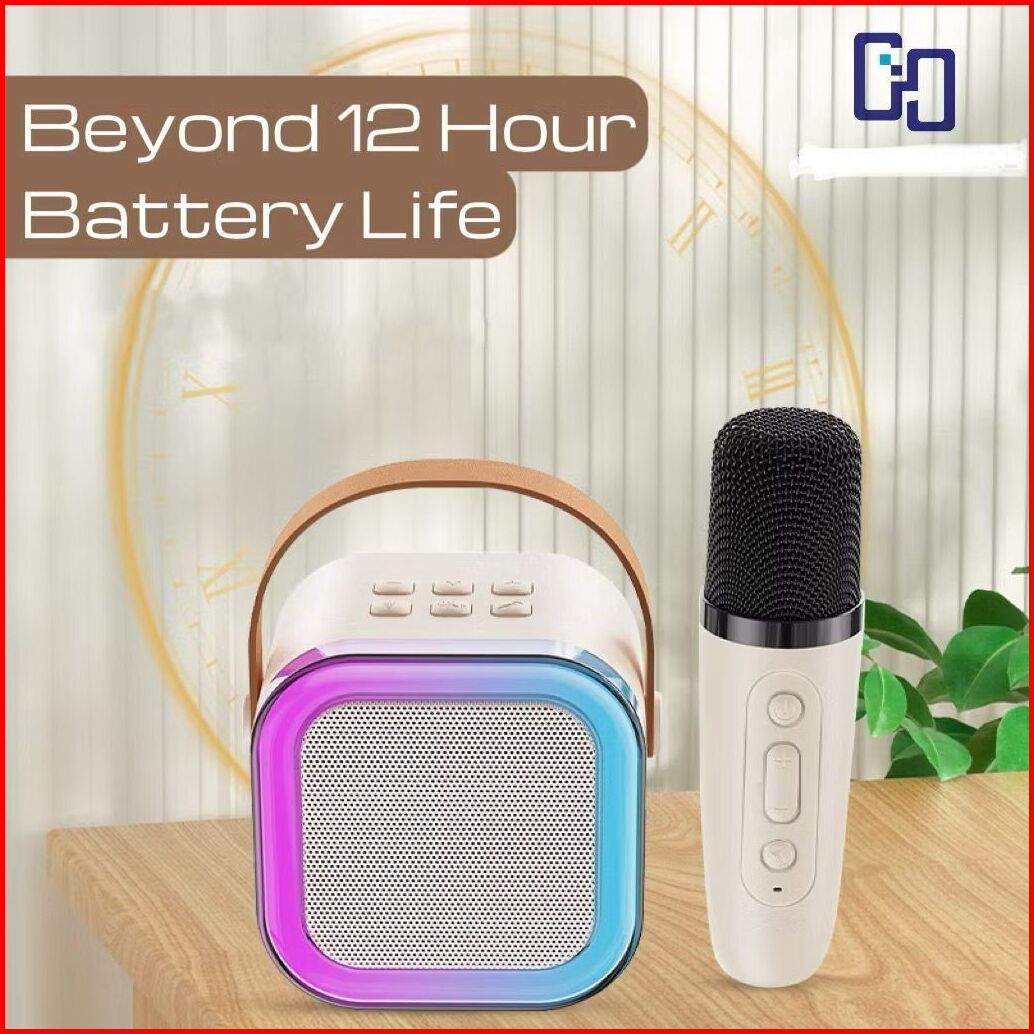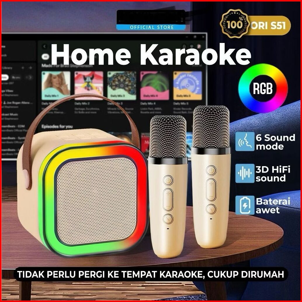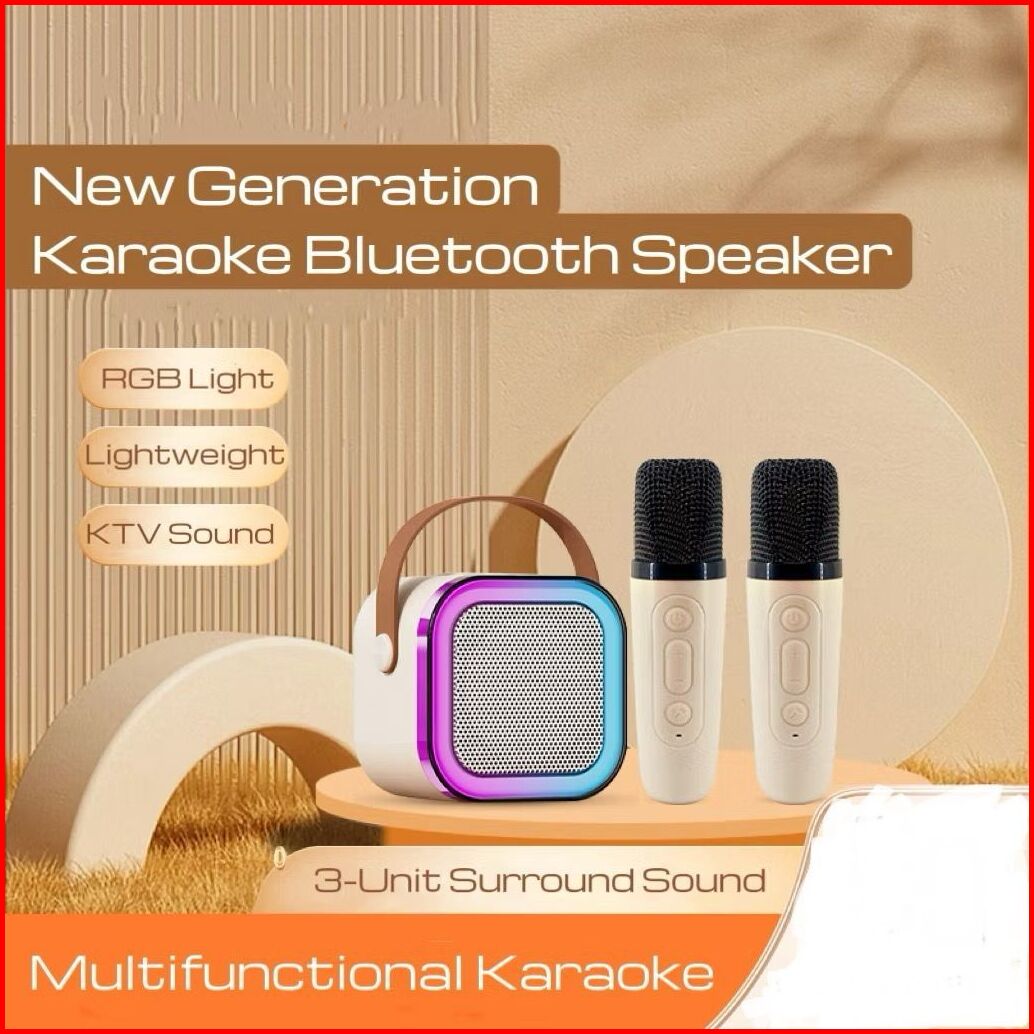 Hot Produk Hopeshop Karaoke Speaker Wireless Bluetooth 2 Mic 1 Set Mini Portabel Lucu Colorful Rgb Karaoke Super Bass