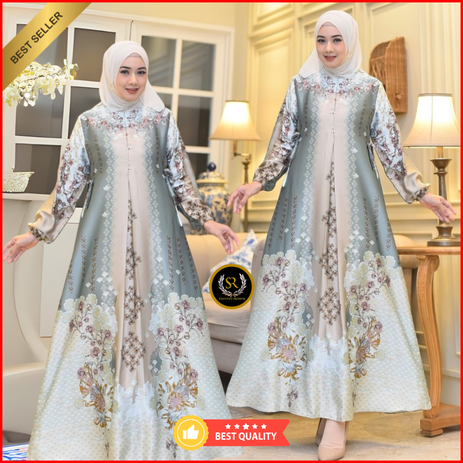 Baju Gamis Armani Silk Premium Wanita Muslim Terbaru Kekinian Model Elegan Dress Bunsui Jumbo Ld 130cm Seragaman