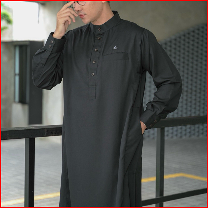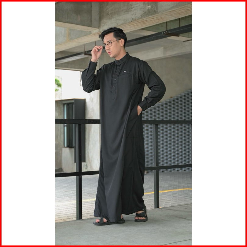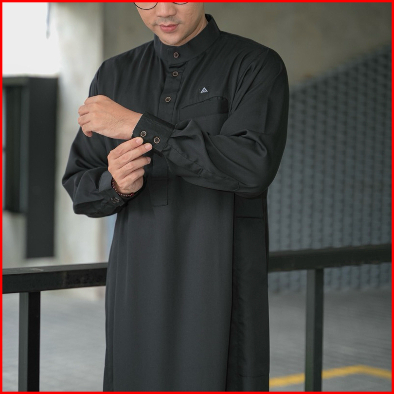 Jubah Pria Dewasa Premium Ahsan - Lengan Manset Black White Edition