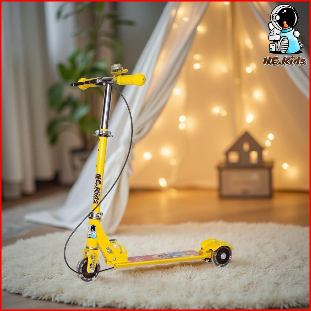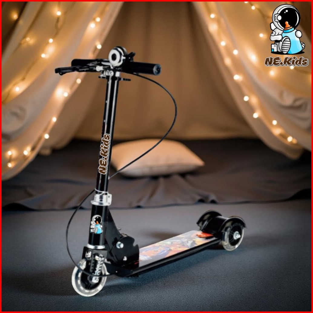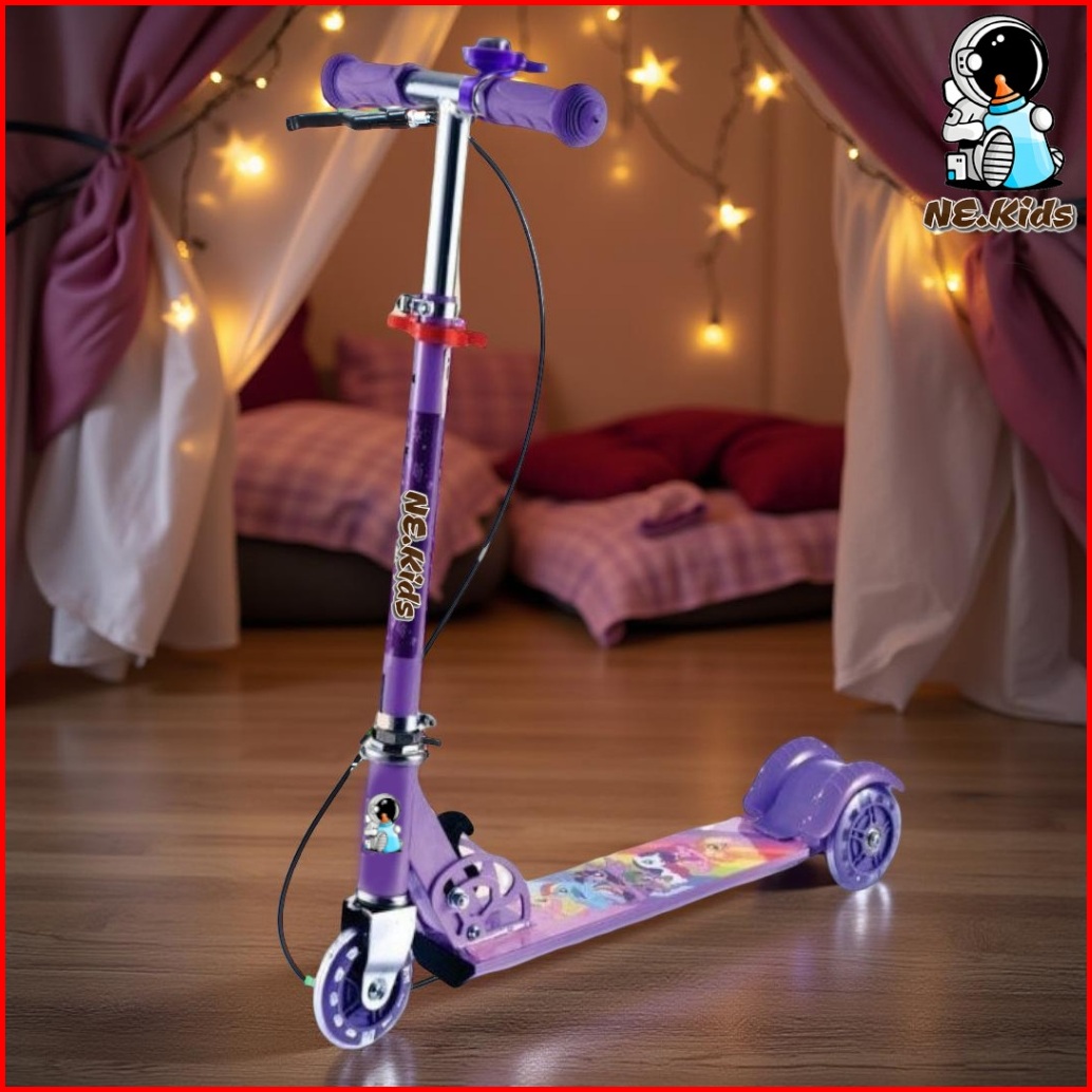Ne.kids Scooter Anak Karakter Kartun Roda Tiga Cocok Untuk Hadiah Otoped Skuter Free Bell Rem Led
