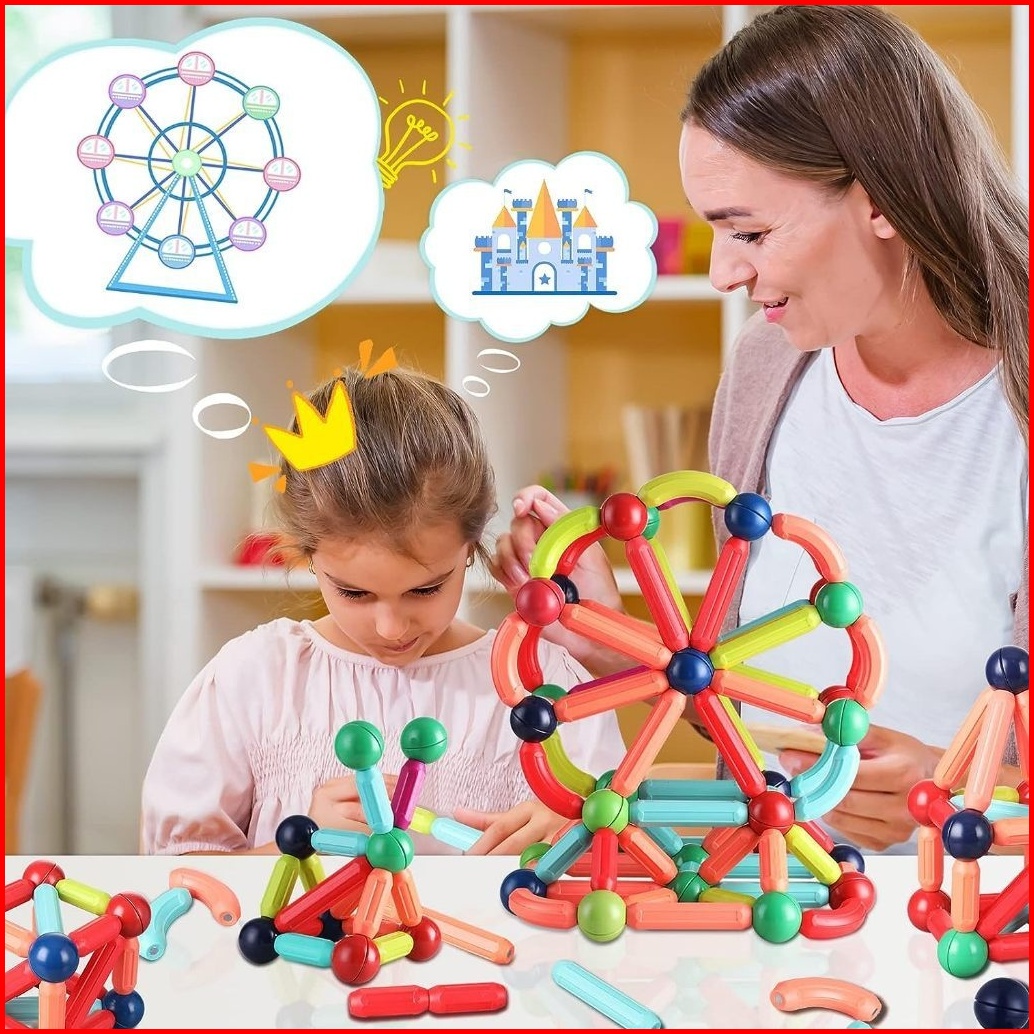 106 84 64 Pcs Mainan Magnet Stick Anak Dengan Kotak Magnetic Edukasi Mainan Kreatifitas Sensory Toys