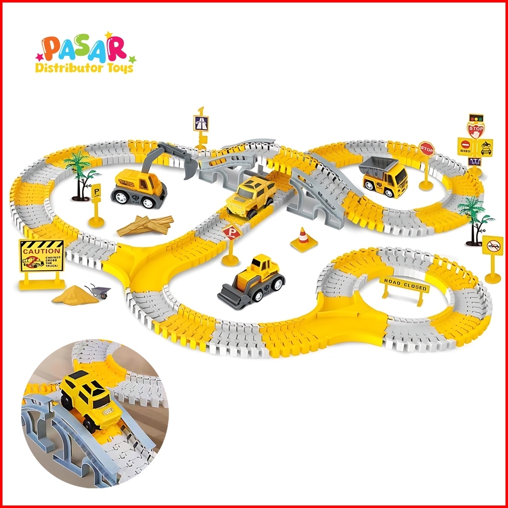 Mainan Anak 255pcs City Truck Mobil Track Railcar Way Laki Laki Rail Mobil Elektrik
